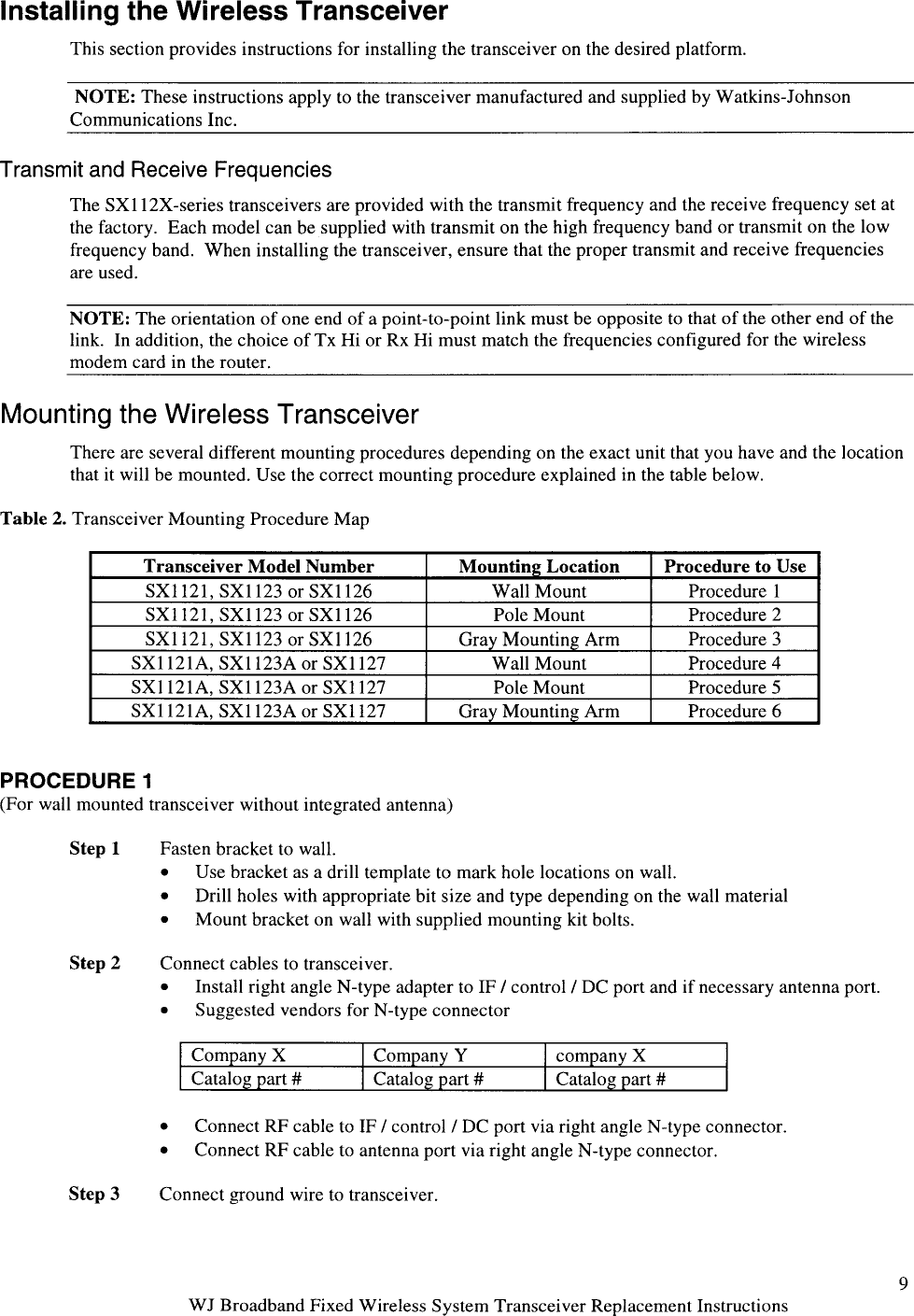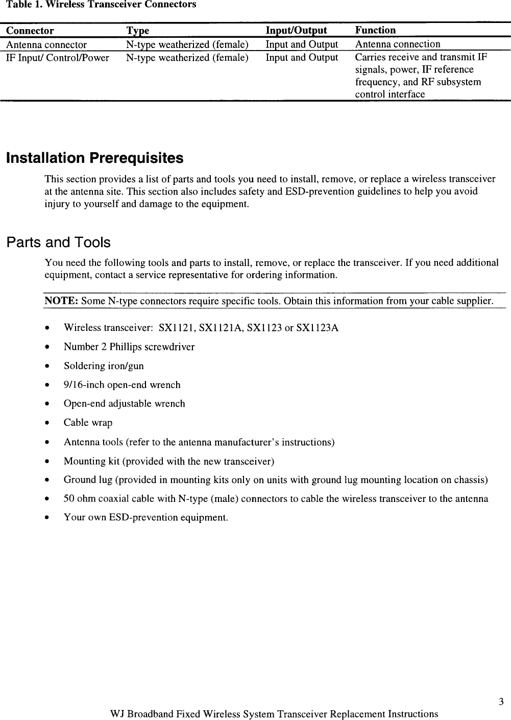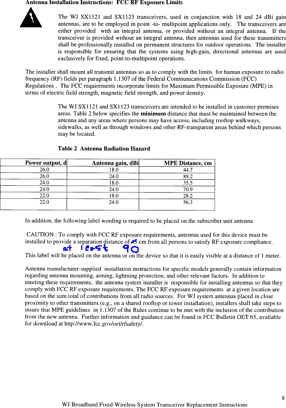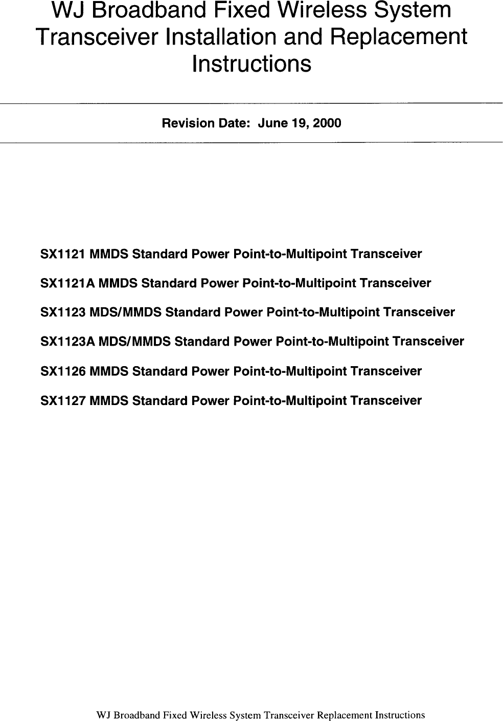 WJ Communications SX1121 Customer Premises MMDS User Manual New