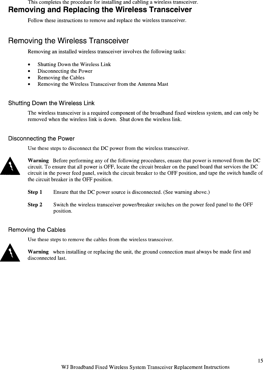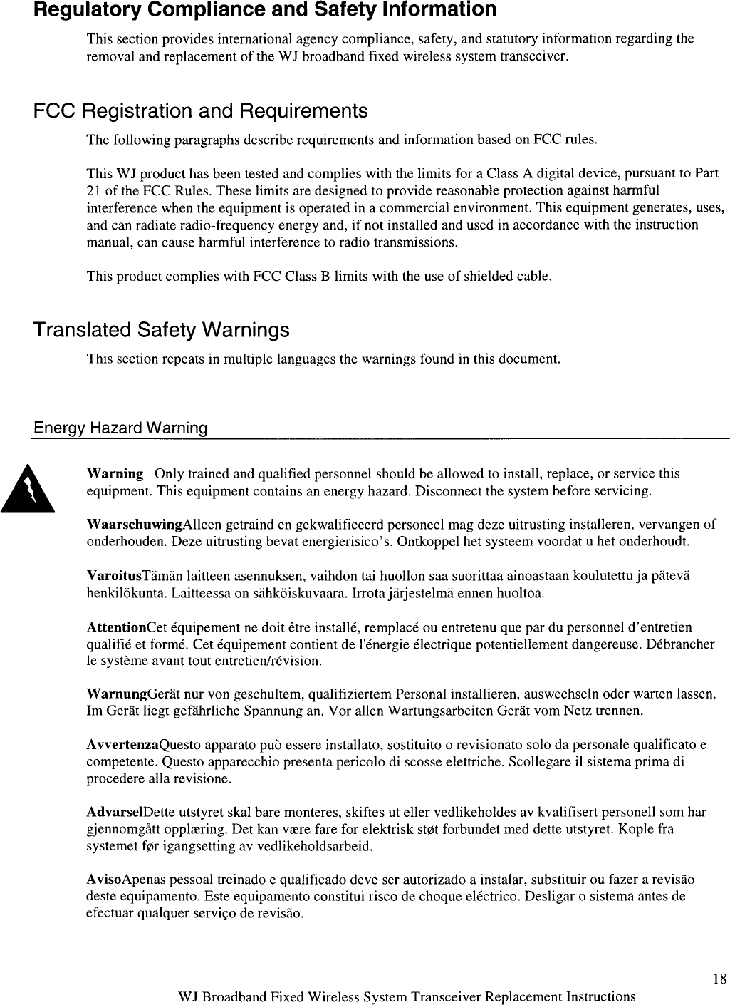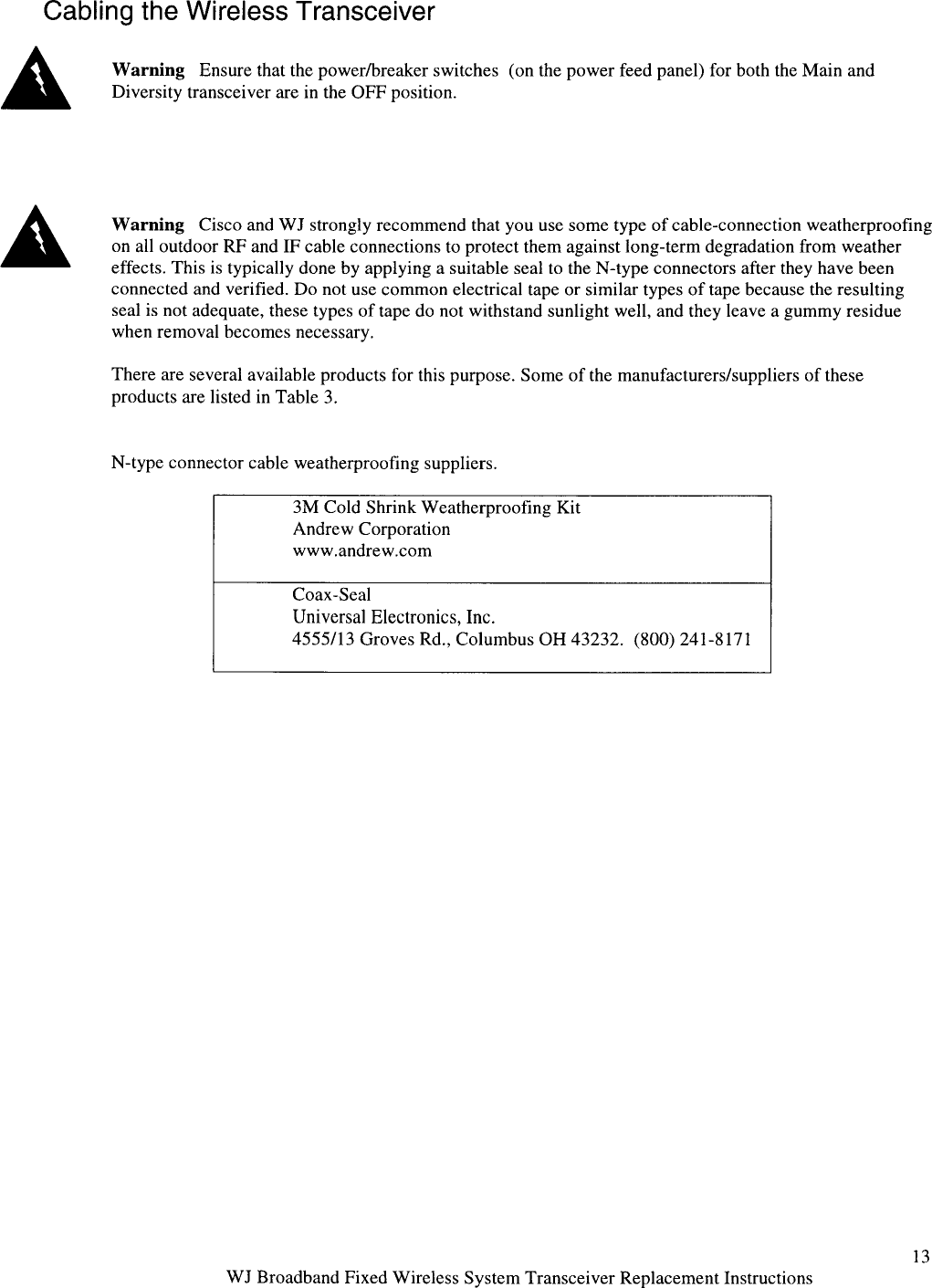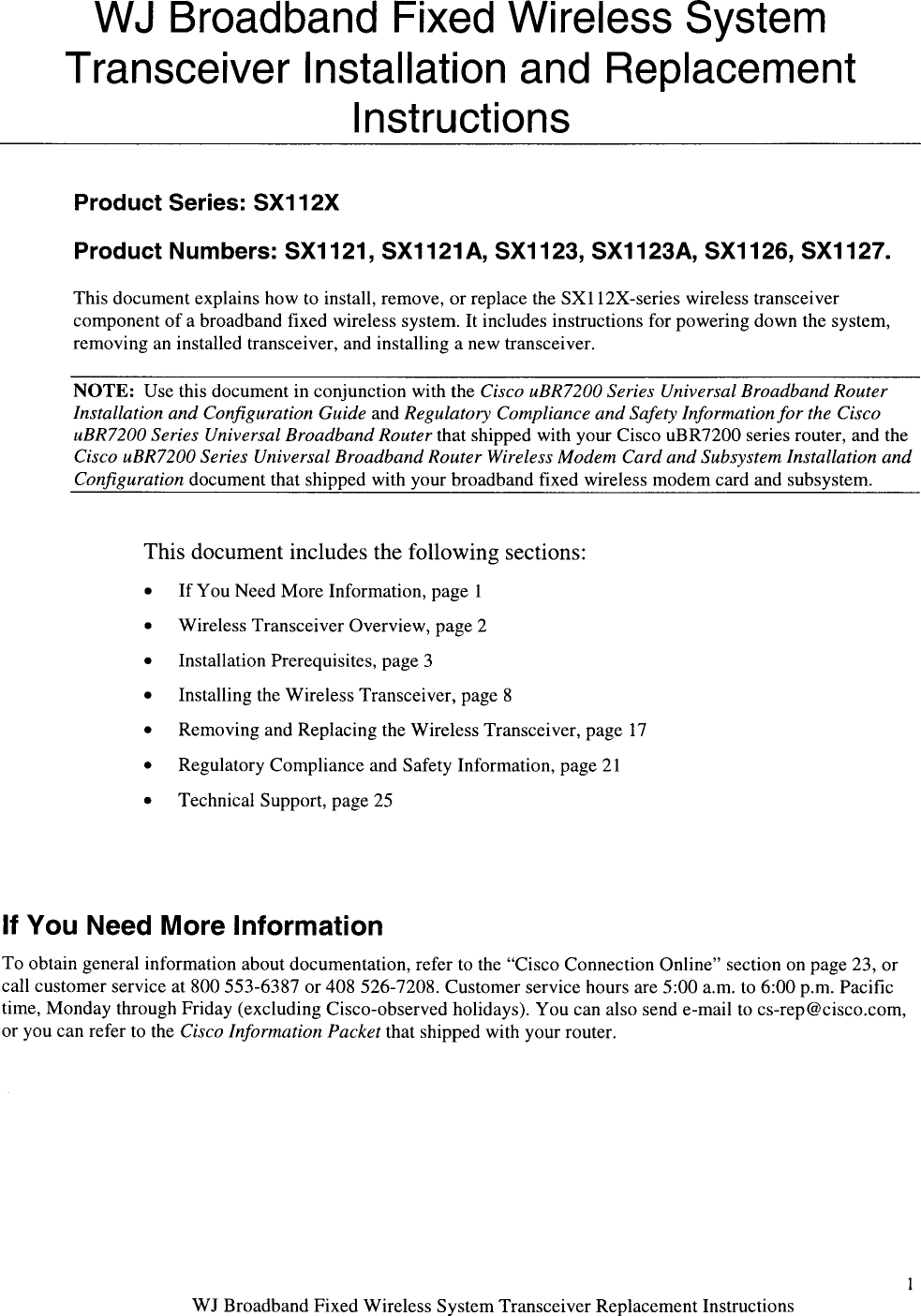 WJ Communications SX1121 Customer Premises MMDS User Manual New