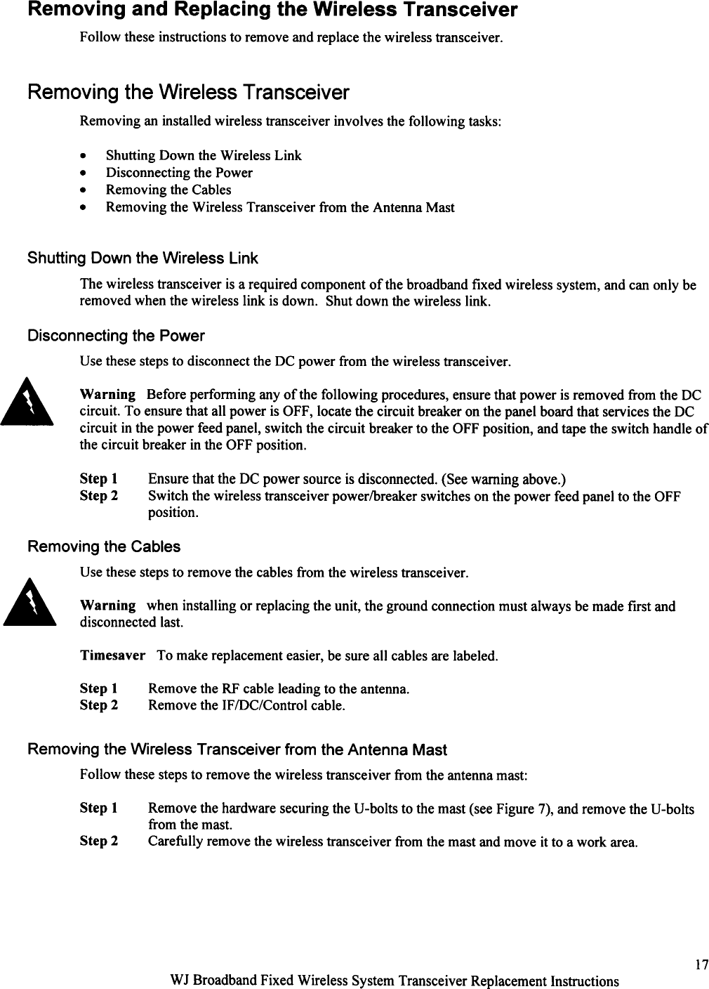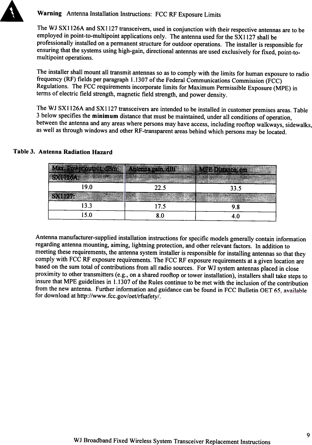 WJ Communications SX1123 MMDS CPE unit User Manual July 21 version of manual complete