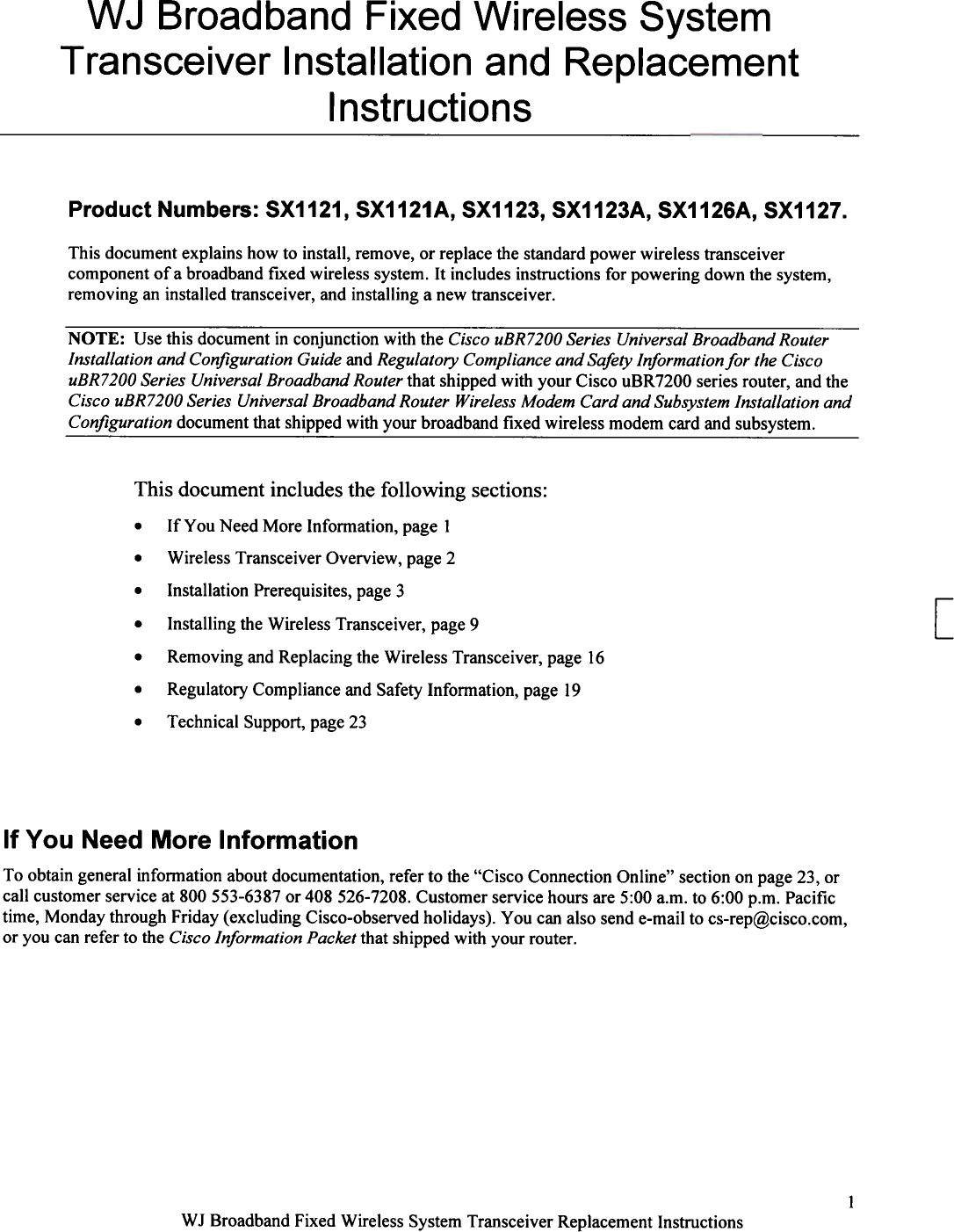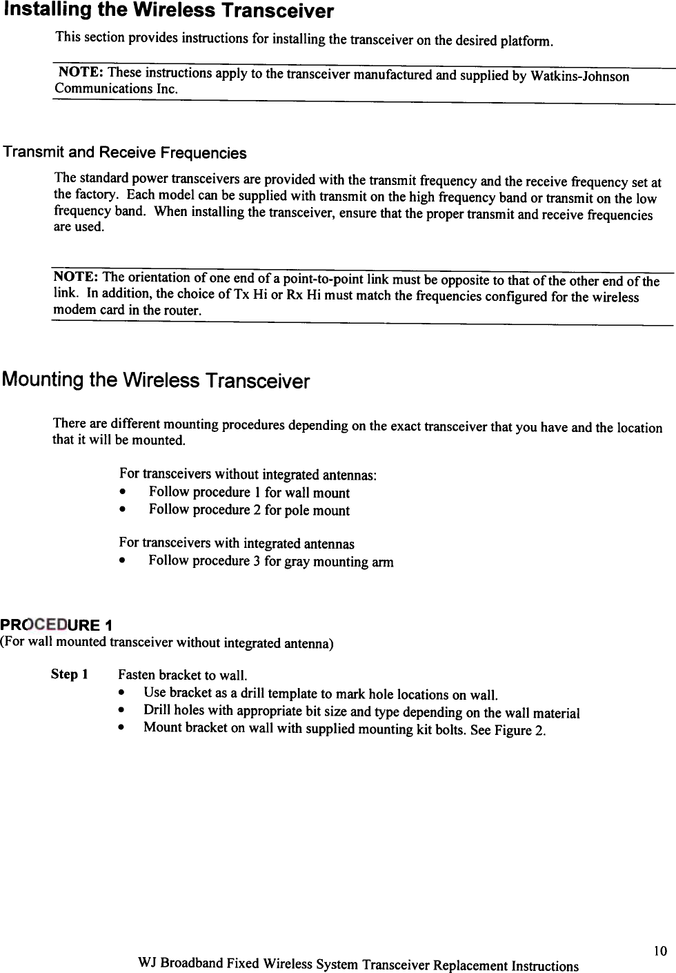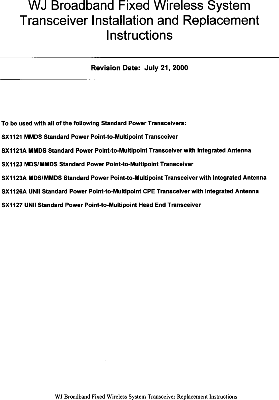 WJ Communications SX1126 CPE Head End User Manual Draft