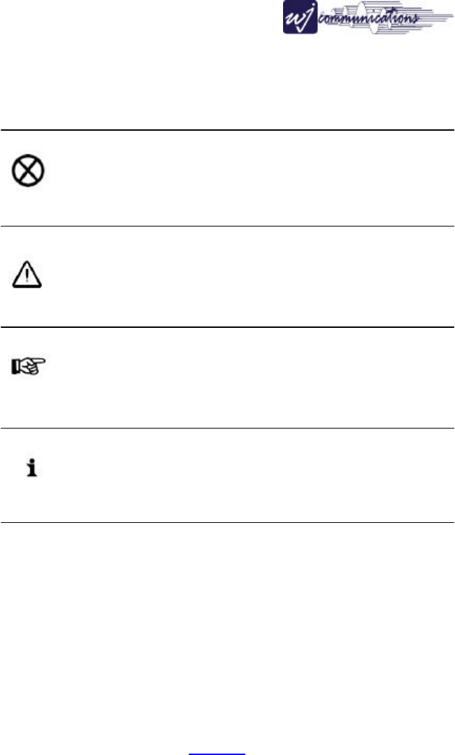 safety of WJ Communications products, customers agree and acknowledge that the possibility of