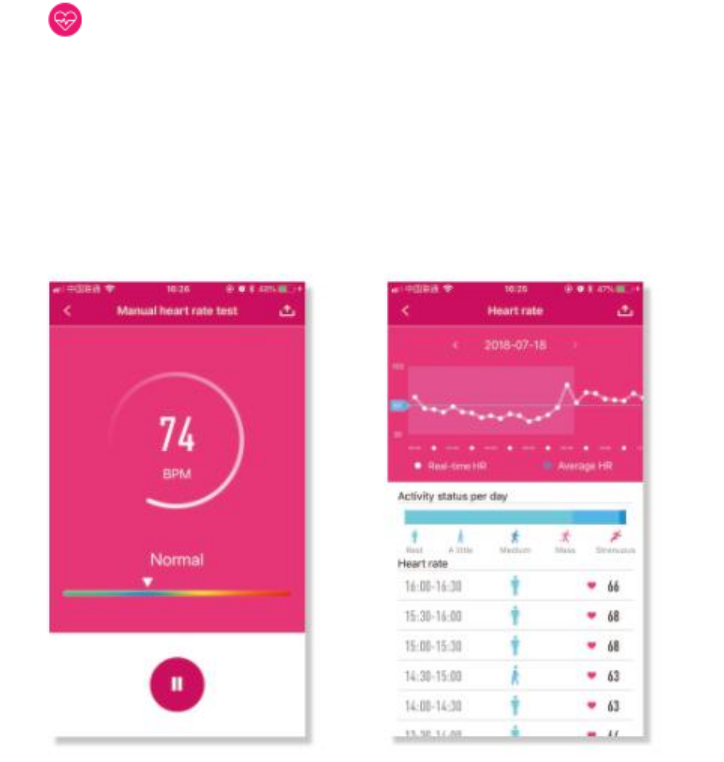 User can find the Heart Rate icon at the bottom of the APP interface. Tapthe