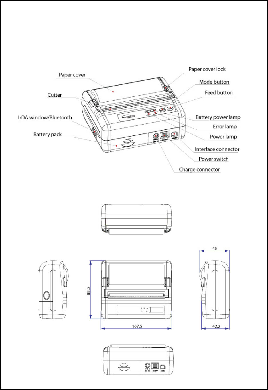 X Pocket size (107.5mm x 88.5mm x 45mm).