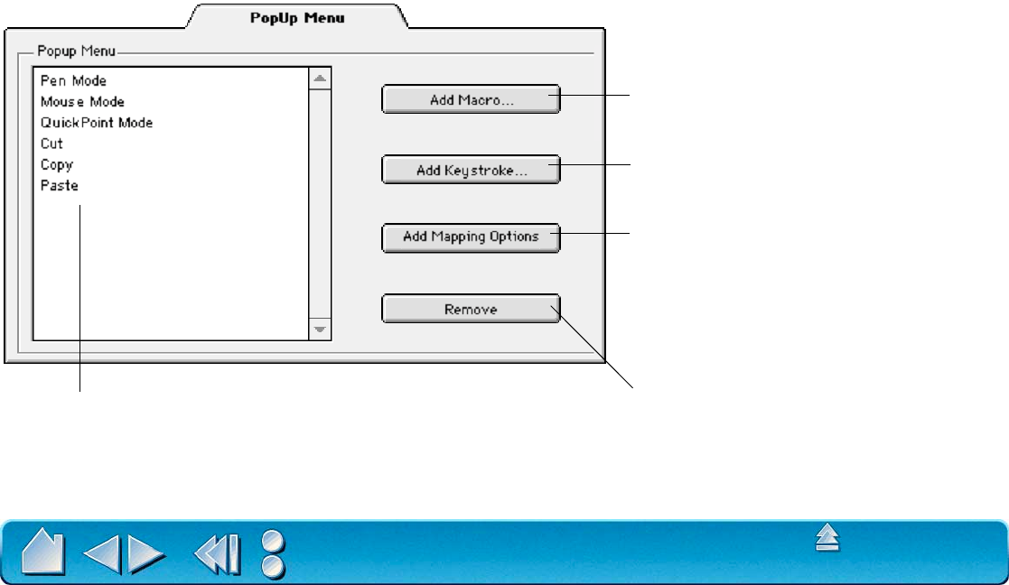 mapping options from Pop-up Menu 82