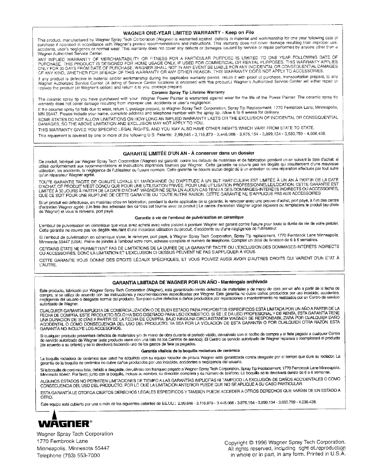 Copyright © 1996 Wagner Spray Tech Corporation.