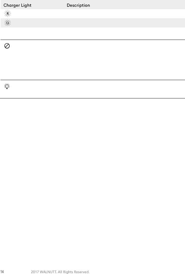 ** Use only with the charger provided here unless otherwise specified by the WALNUTT. Actual