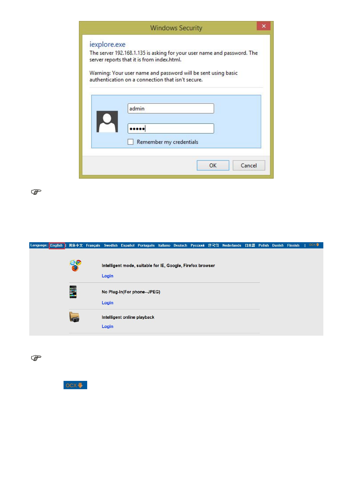 Note: If the OCX already has been installed you may login directly. If not, please install OCX.
