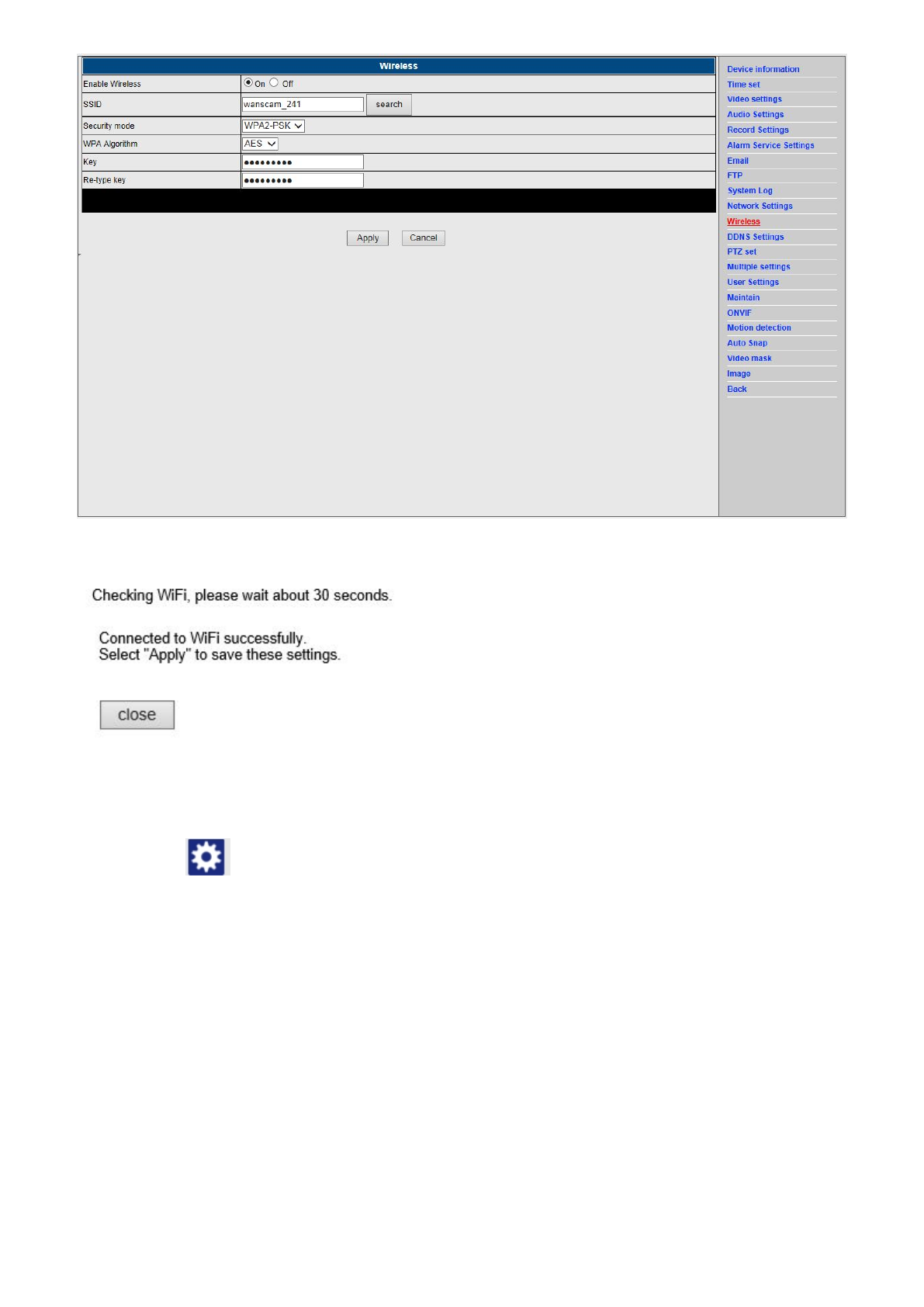 4. Click on “Check”, after 30 seconds, the notification will show you if the WIFI settings are successful.