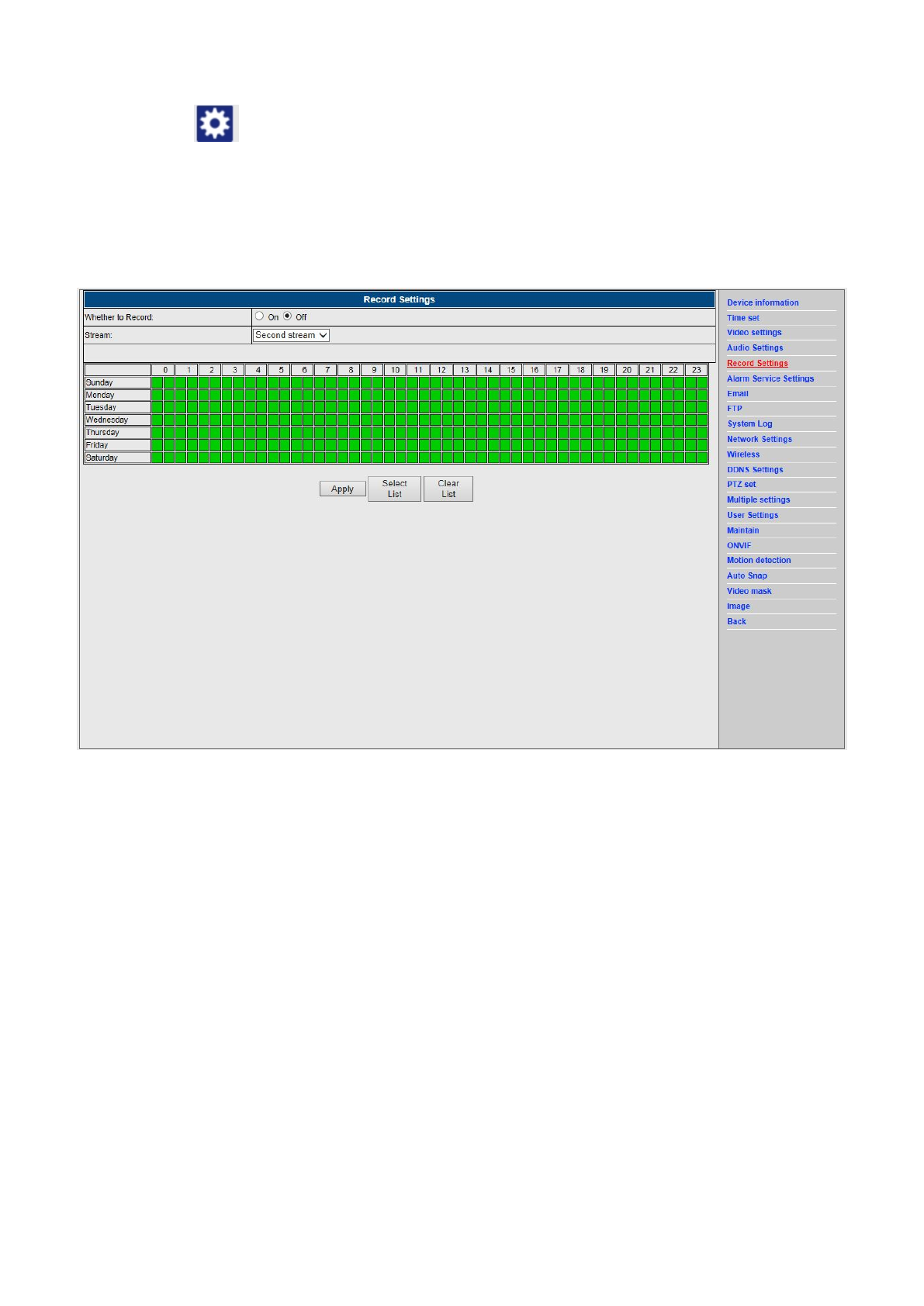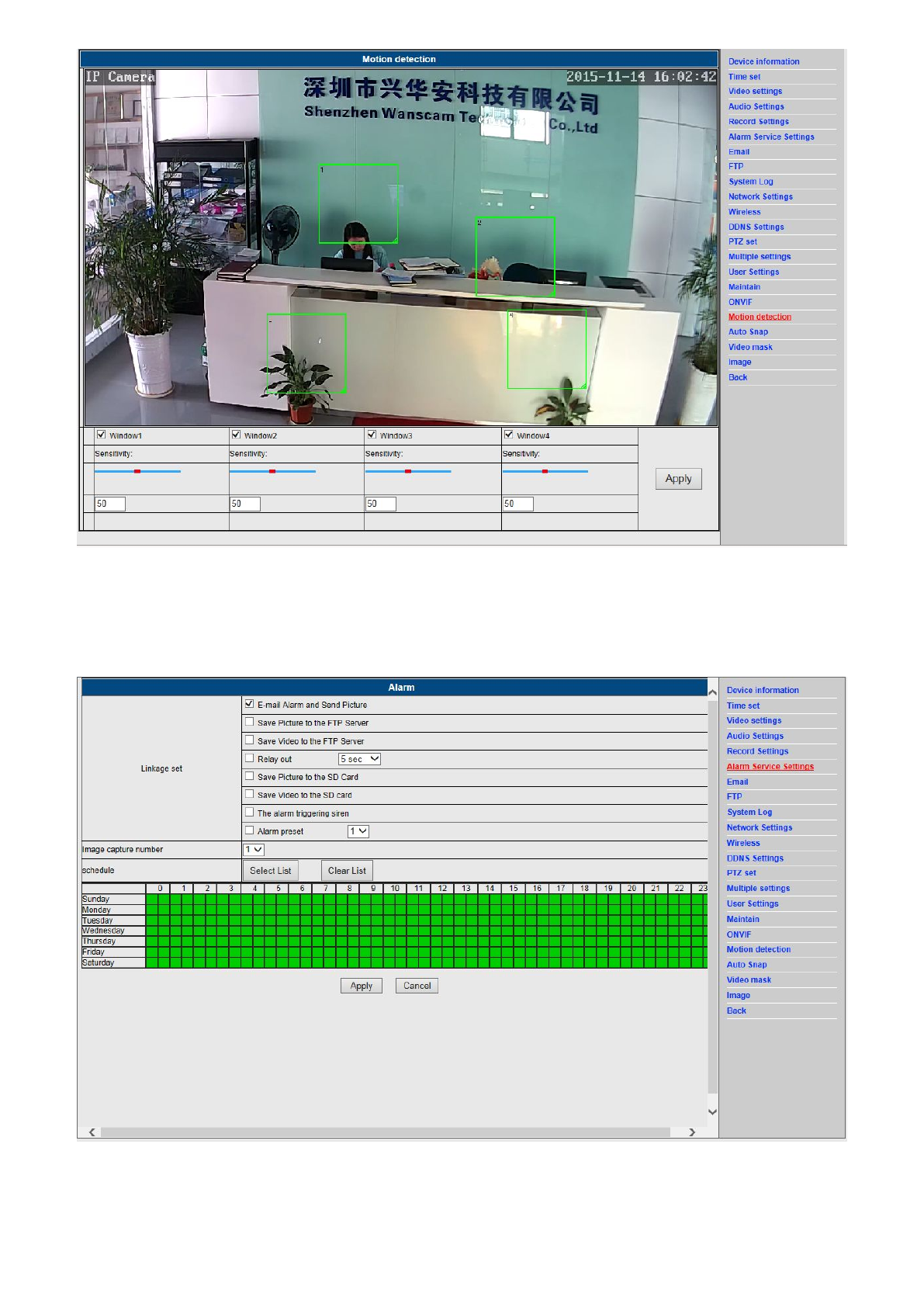 2) You may choose the “Alarm trigger ringtone” and time schedule, then click on ”Apply”, If the motion