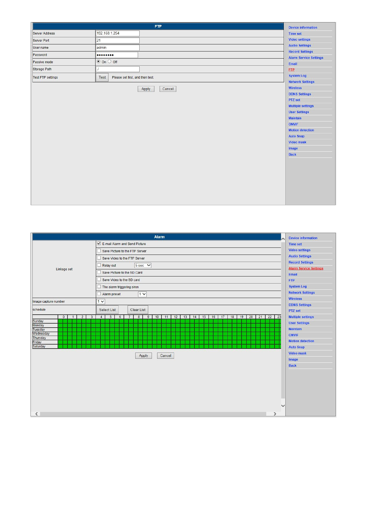 2) FTP service is a precondition for the alarm function. If the motion detect activates your camera an email