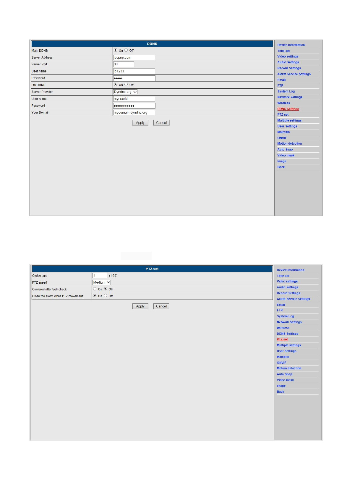 2) Choose the DDNS server, enter the DDNS user name and password.