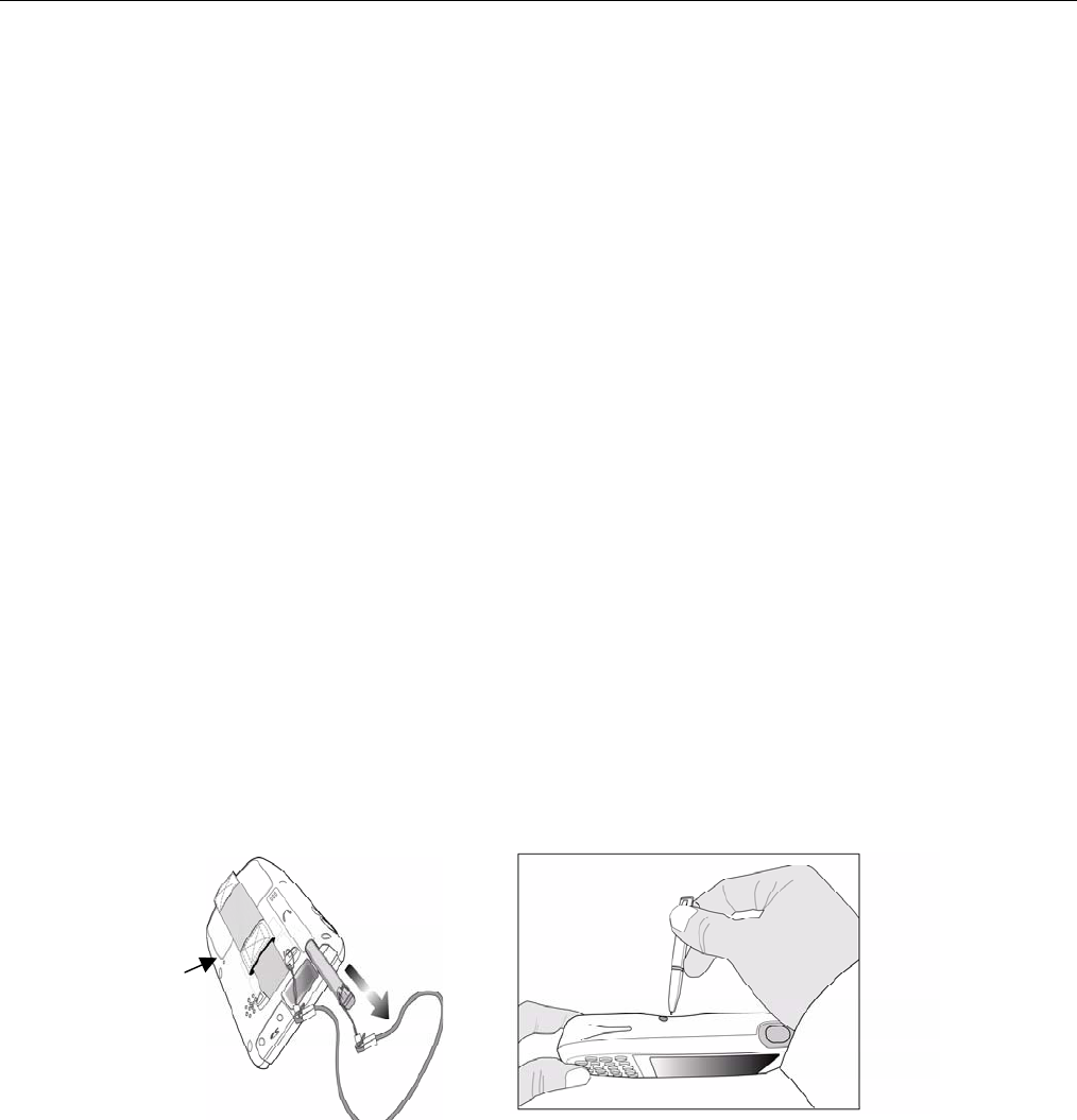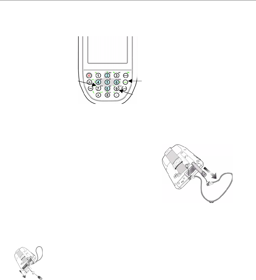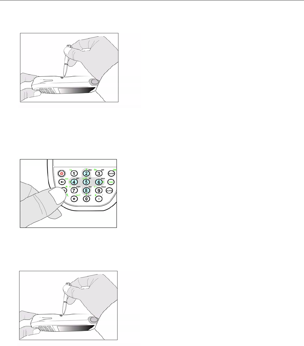 2. While holding the TAB key, insert the tip of the stylus into the reset hole on the back of the WPA1200 and