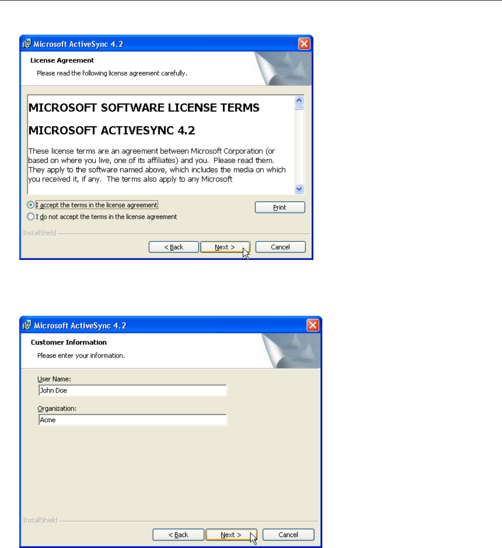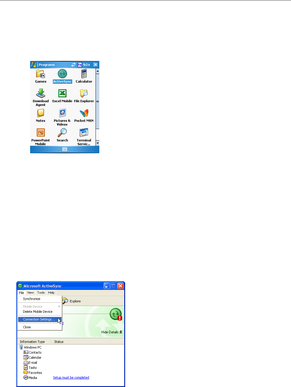 ActiveSync operation, you can restore any data that you previously synchronized to your computer or you can