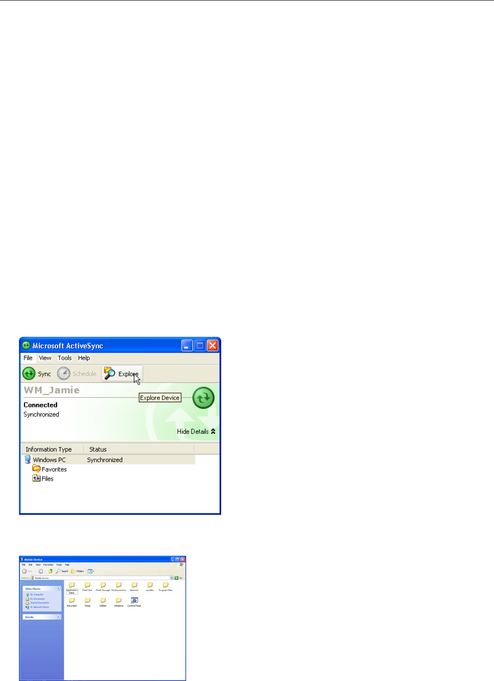 2. In ActiveSync on your computer, click Explore.