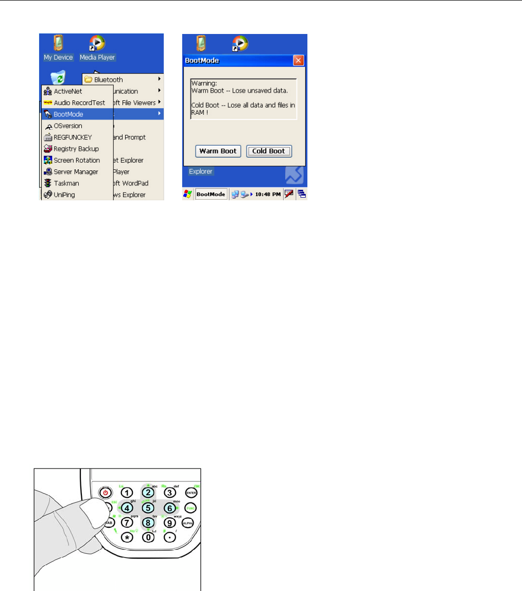 2. Tap Cold Boot. The system is reset and you will lose all data including all files in the RAM memory.