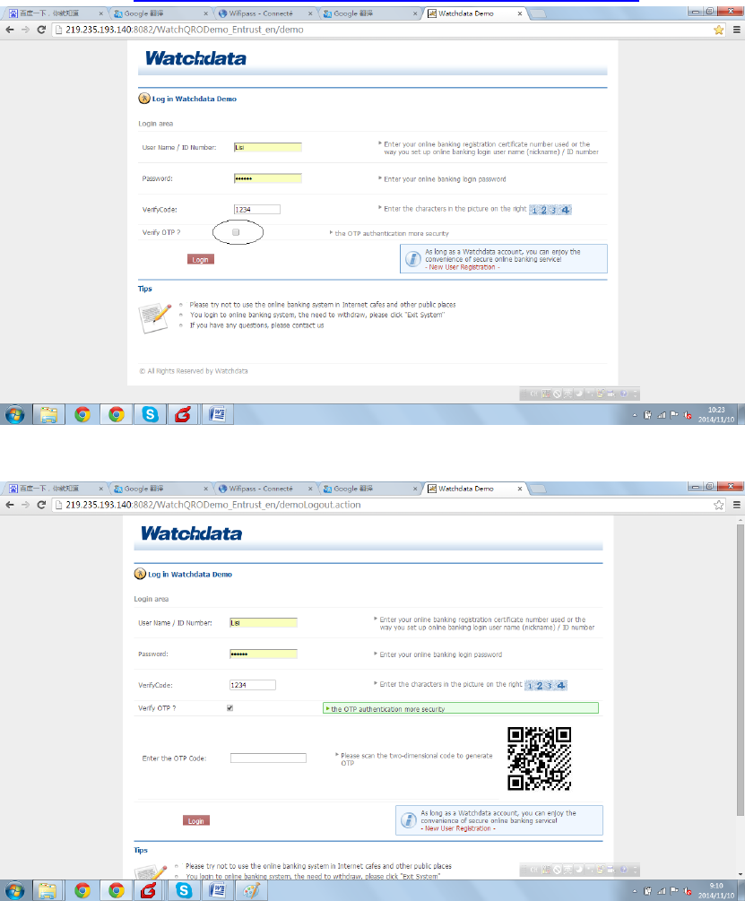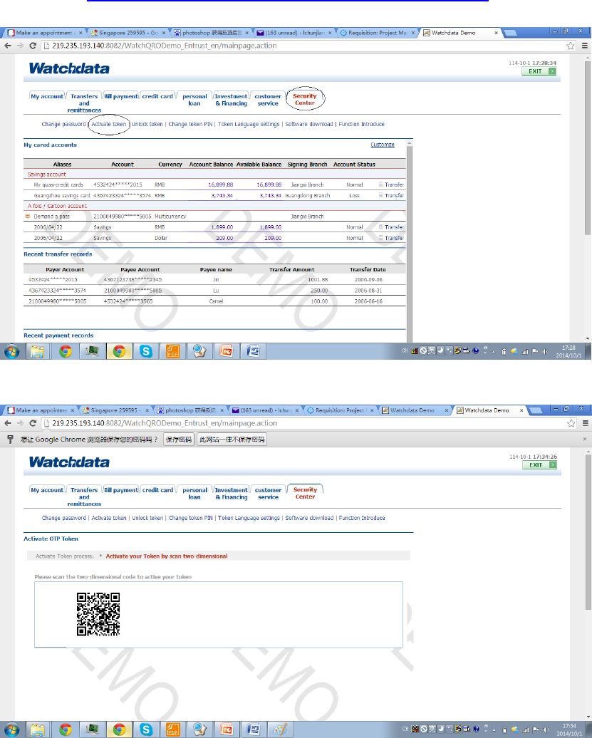 4. Open url:http://219.235.193.140:8082/WatchQRODemo_Entrust_en/demo, login without