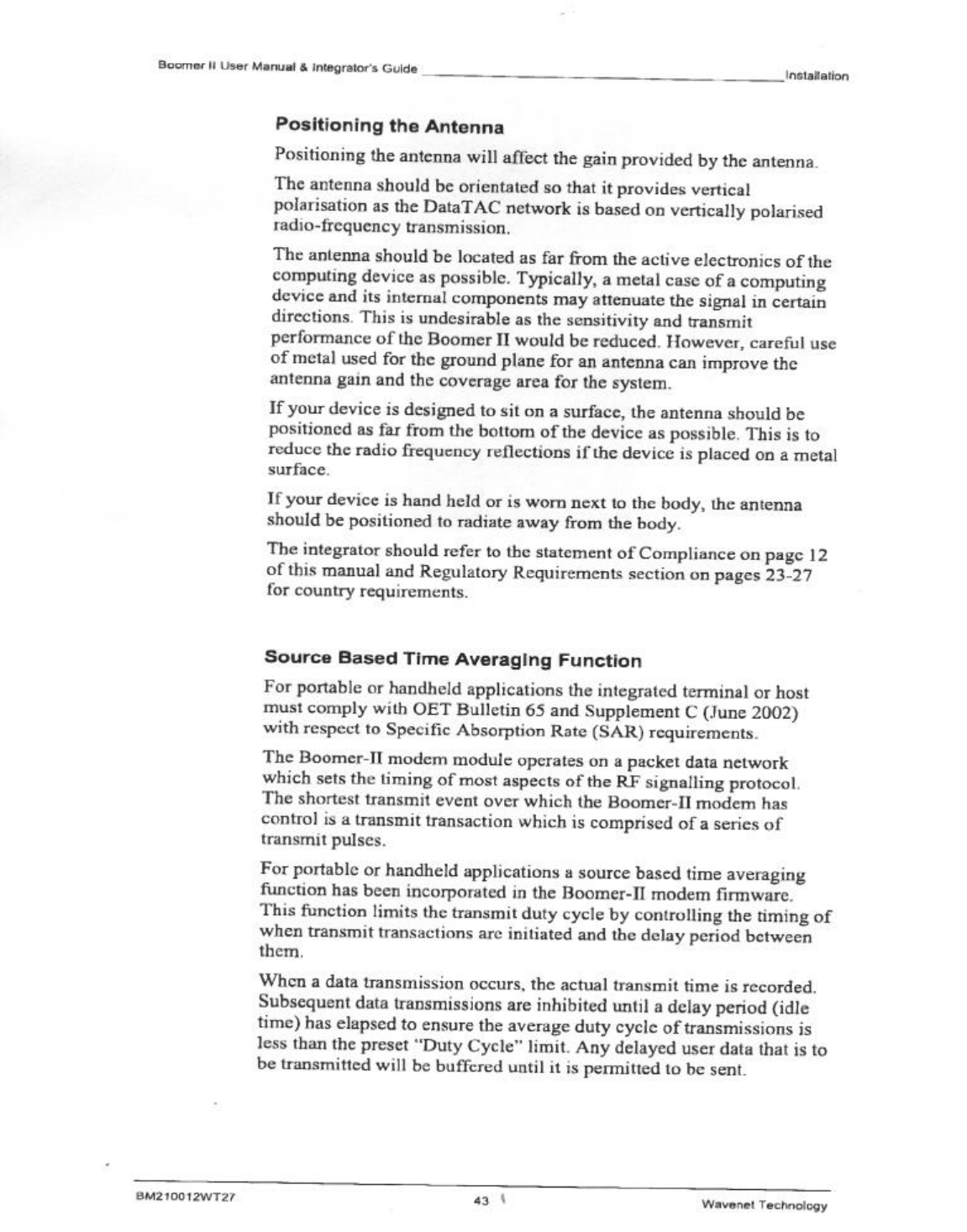 Wavenet Technology BM28001 Wireless OEM Modem Module User Manual Printing