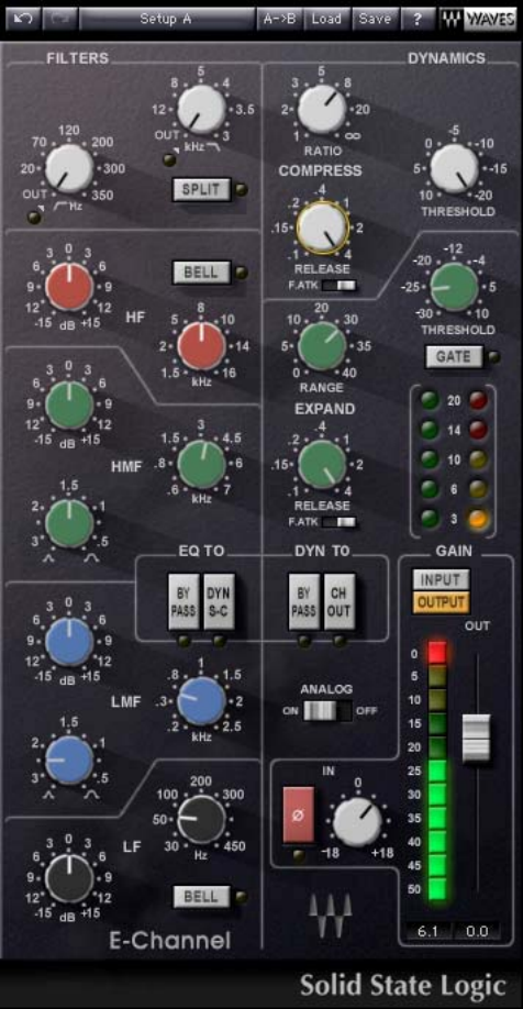 The Waves SSL E-Channel is modeled after the SL4000 E Series console, combining the