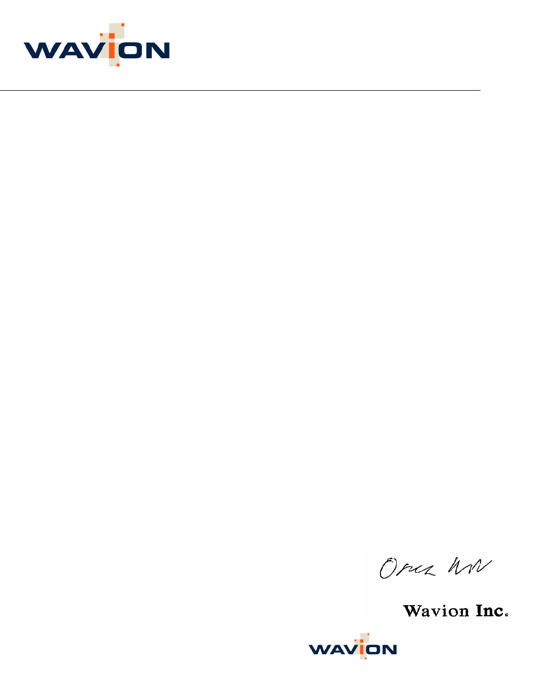 6 Ha’yetsira Street, PO Box 580, Yoqne’am-Illit 20692 Main: +972.4.909.7300 Fax: +972.4.909.7322 Web: www.wavion.net