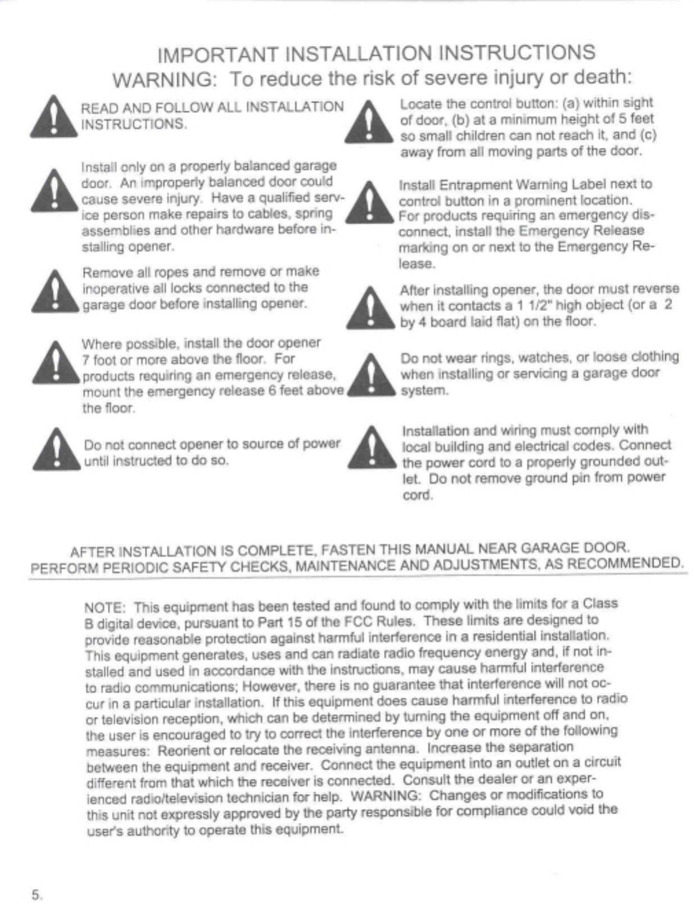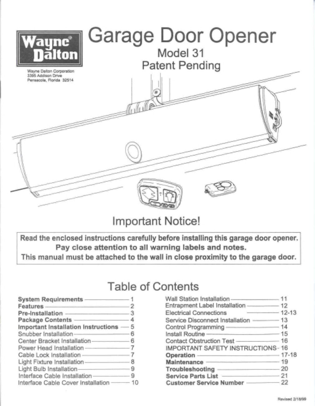 Wayne Dalton Corporation Garage Door Opener Users Manual Part 1