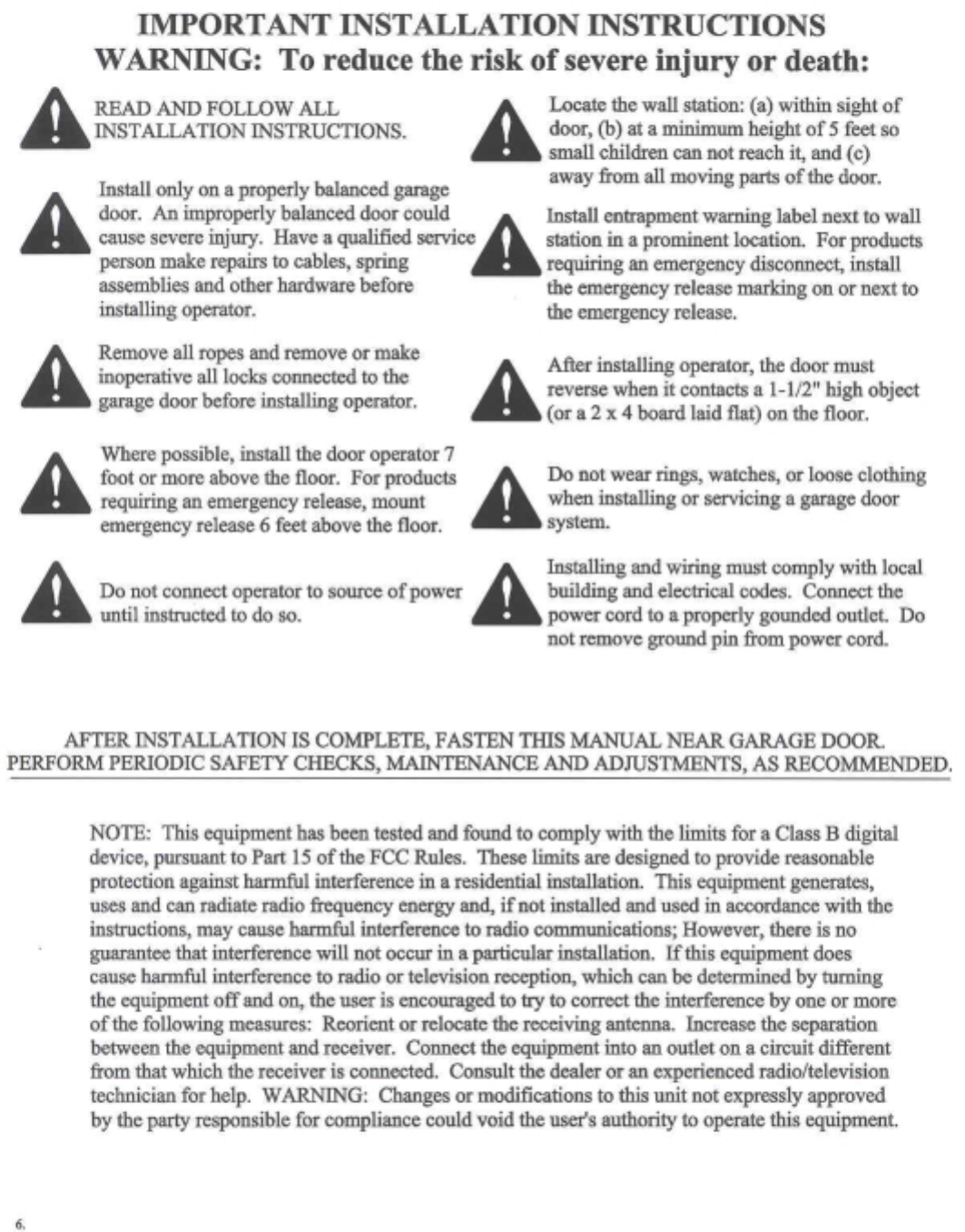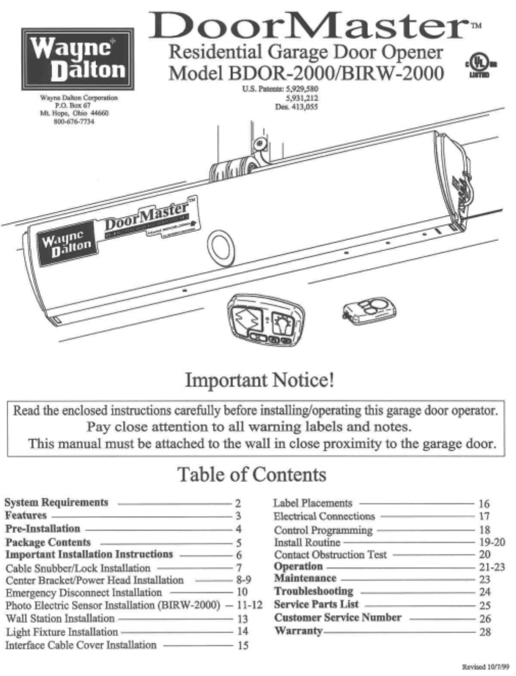Wayne Dalton Corporation Garage Door Opener Users Manual Part 1