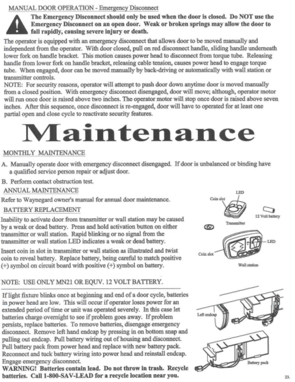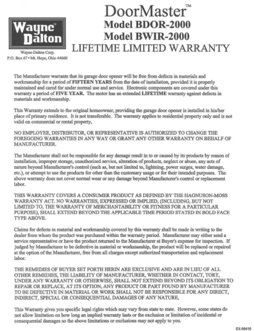 Wayne Dalton Corporation Garage Door Opener Users Manual Part 2