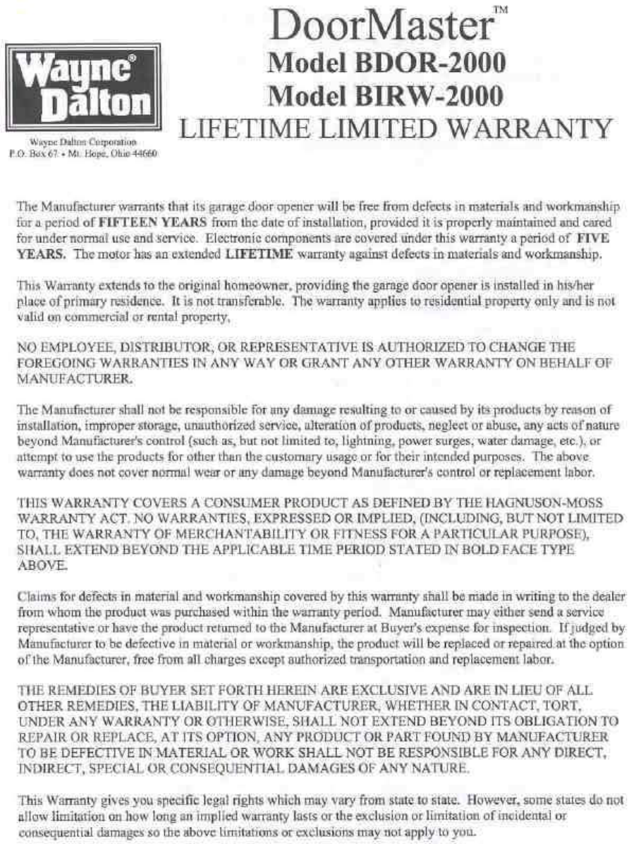 Wayne Dalton Corporation Garage Door Opener Manual Part 2