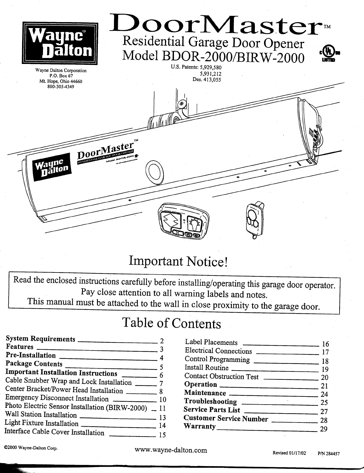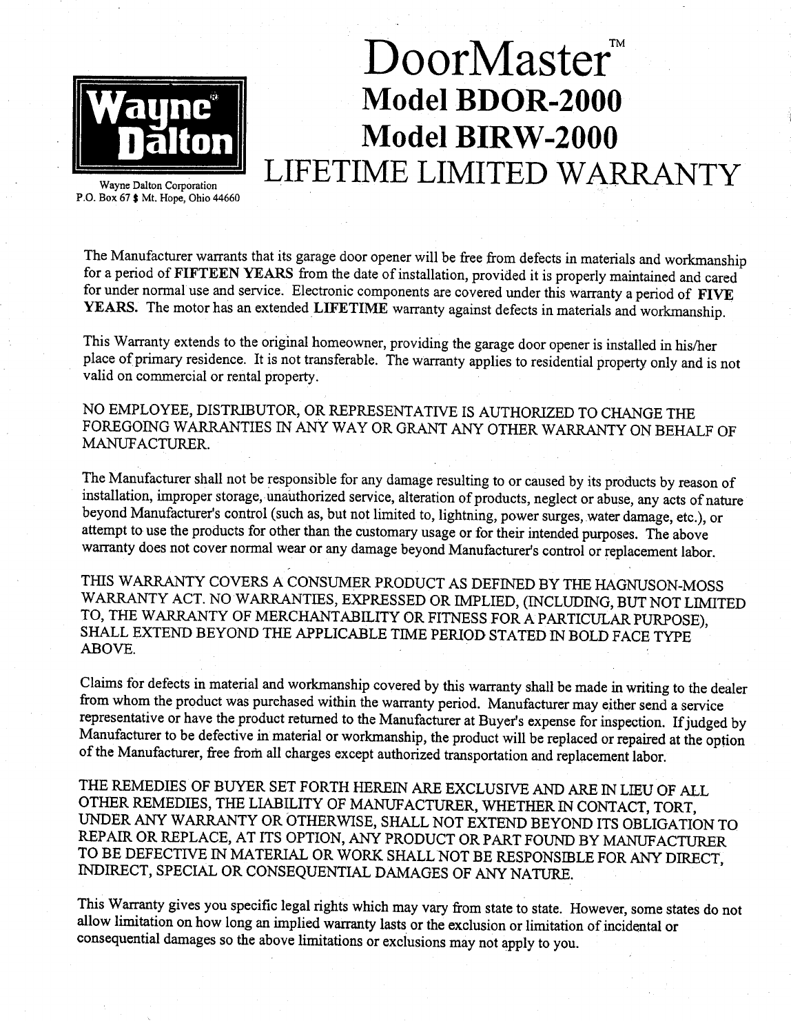 Wayne Dalton Corporation Garage Door Opener Transmitter users manual