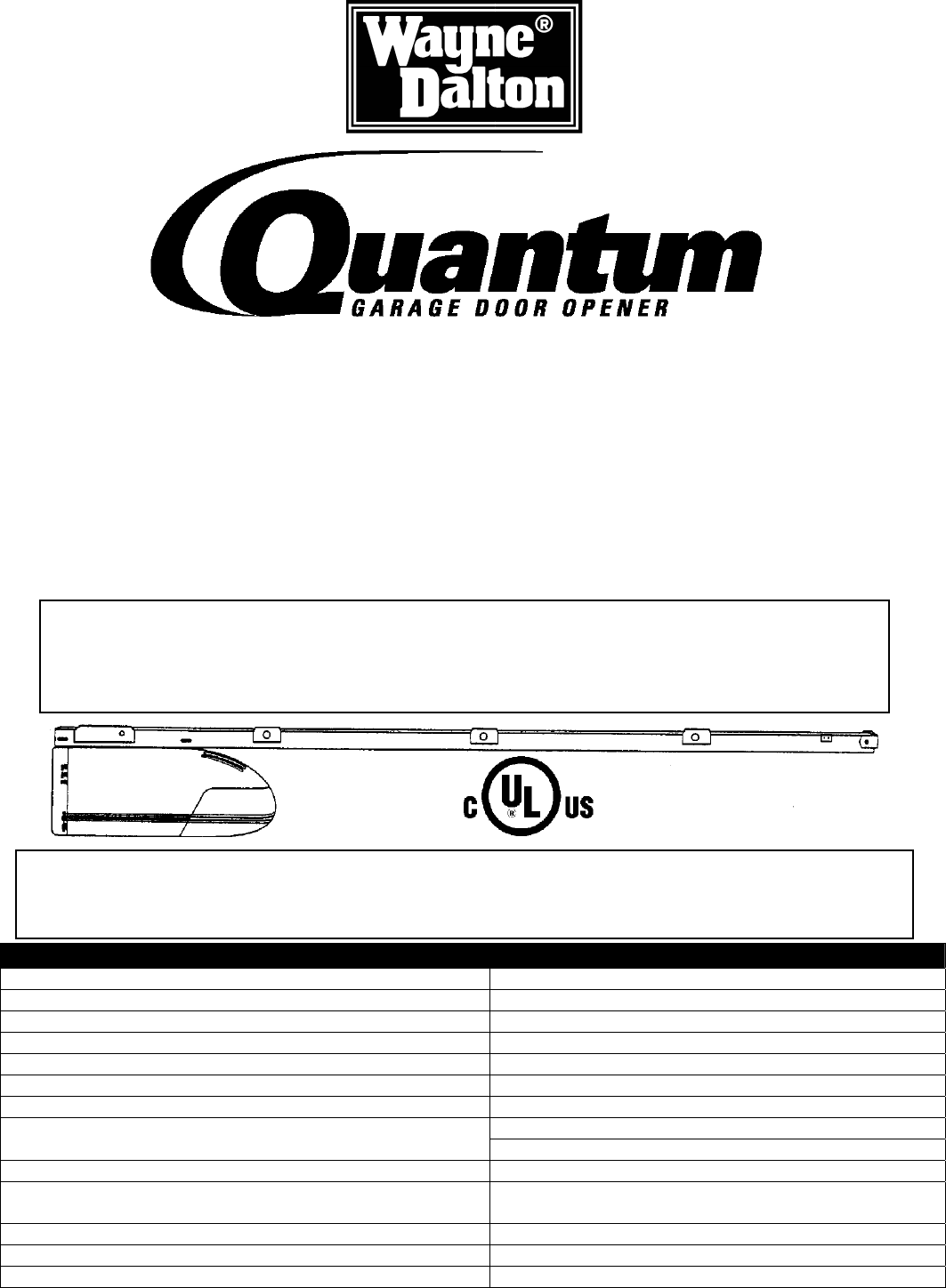 The Manufacturer warrants that the Quantum™ garage door opener will be free from defects in materials and workmanship for a period