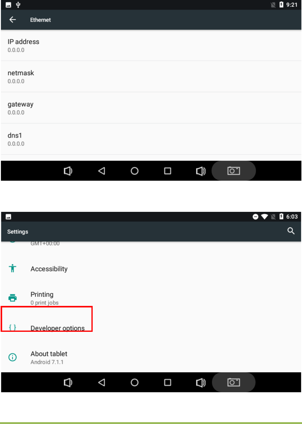 After Android 7.1.1 OS starts up, plug USB flash disk into USB Host connector