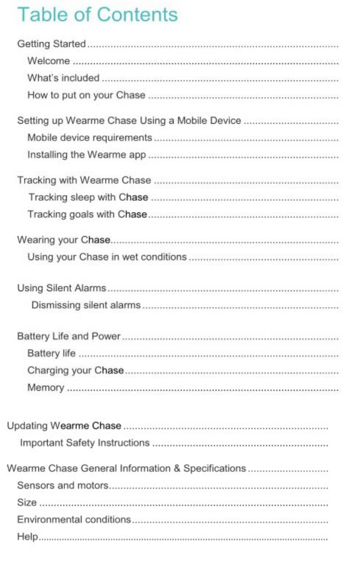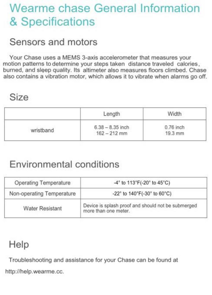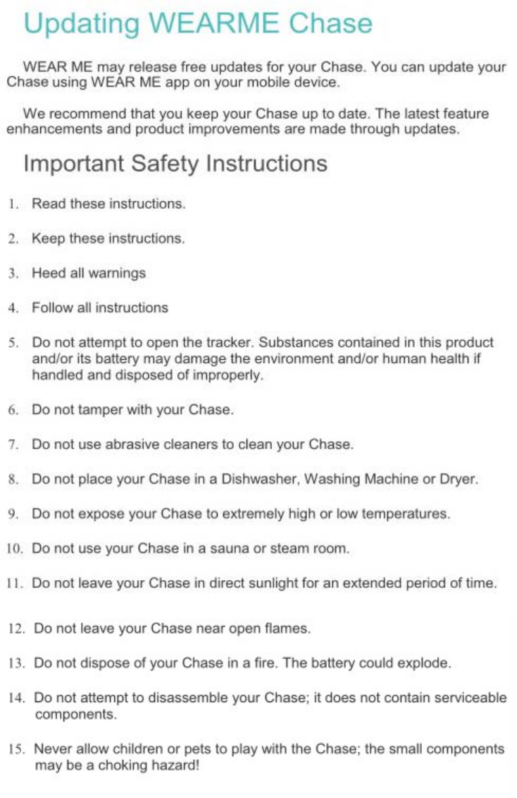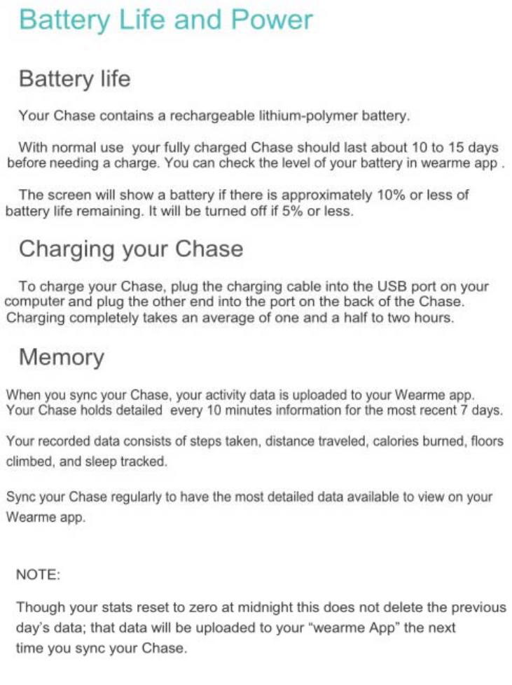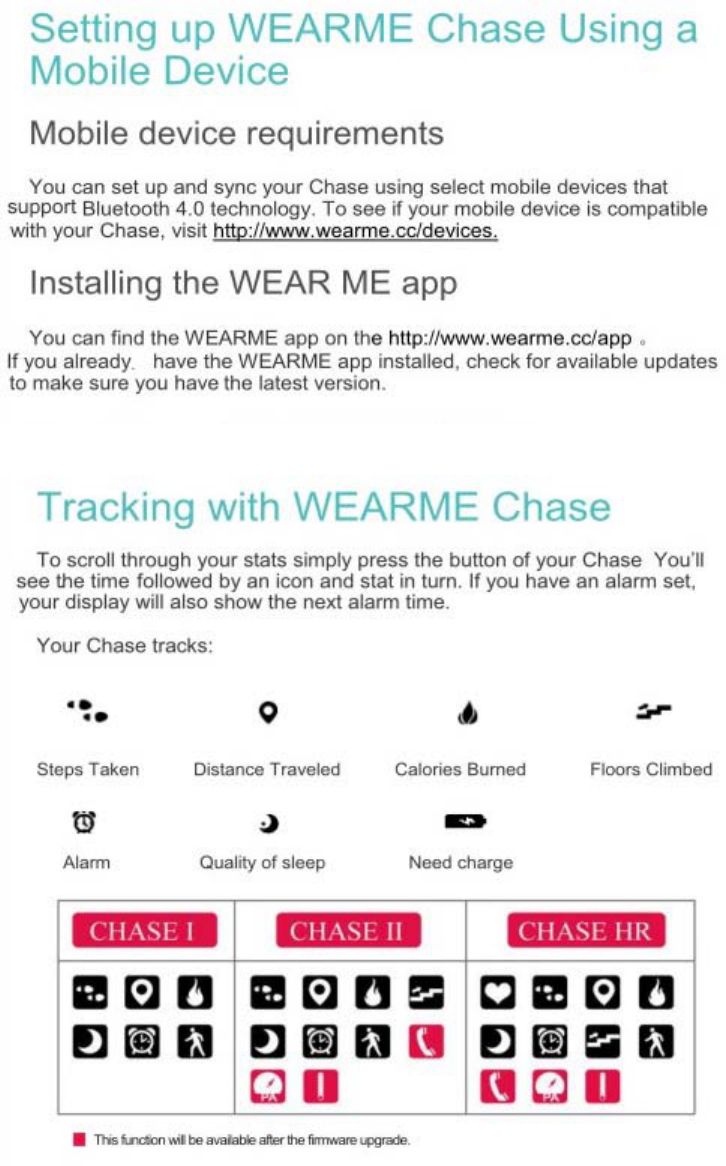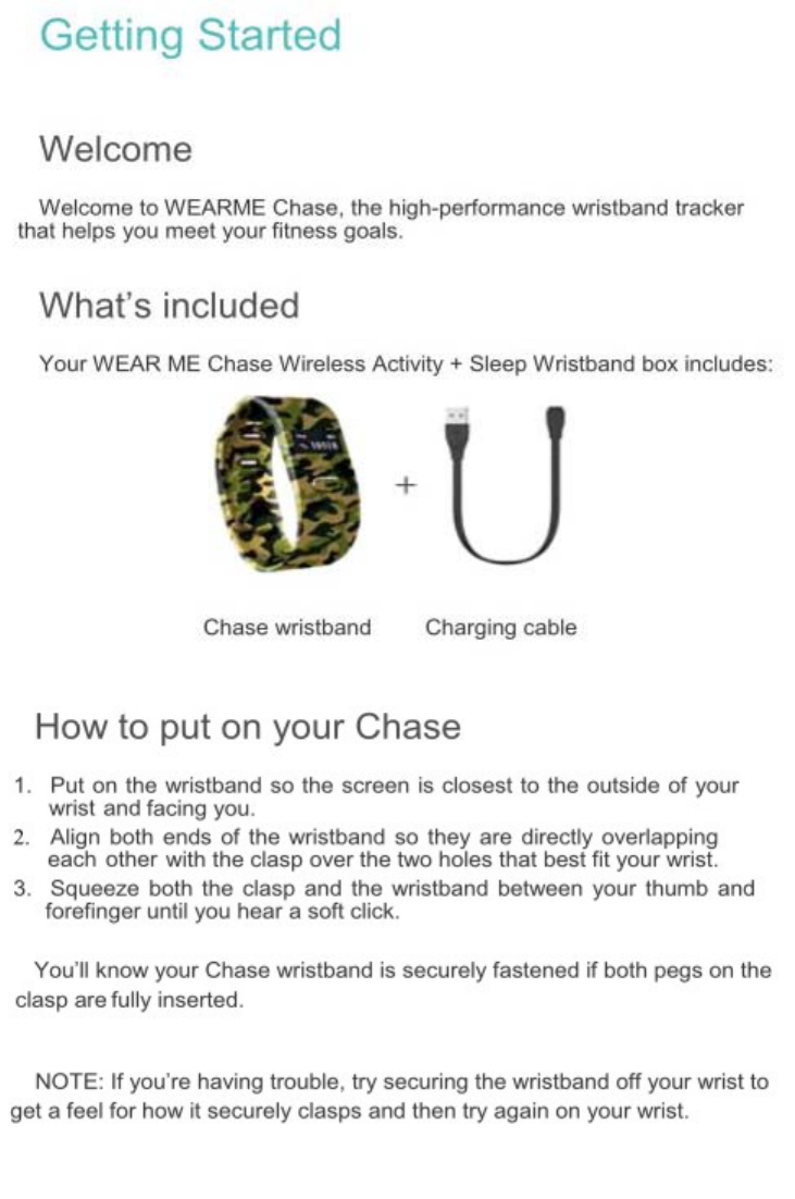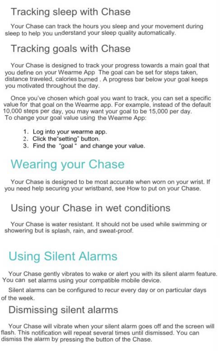 Wearme Technology CHASE Bluetooth Smart Wristband User Manual Manual