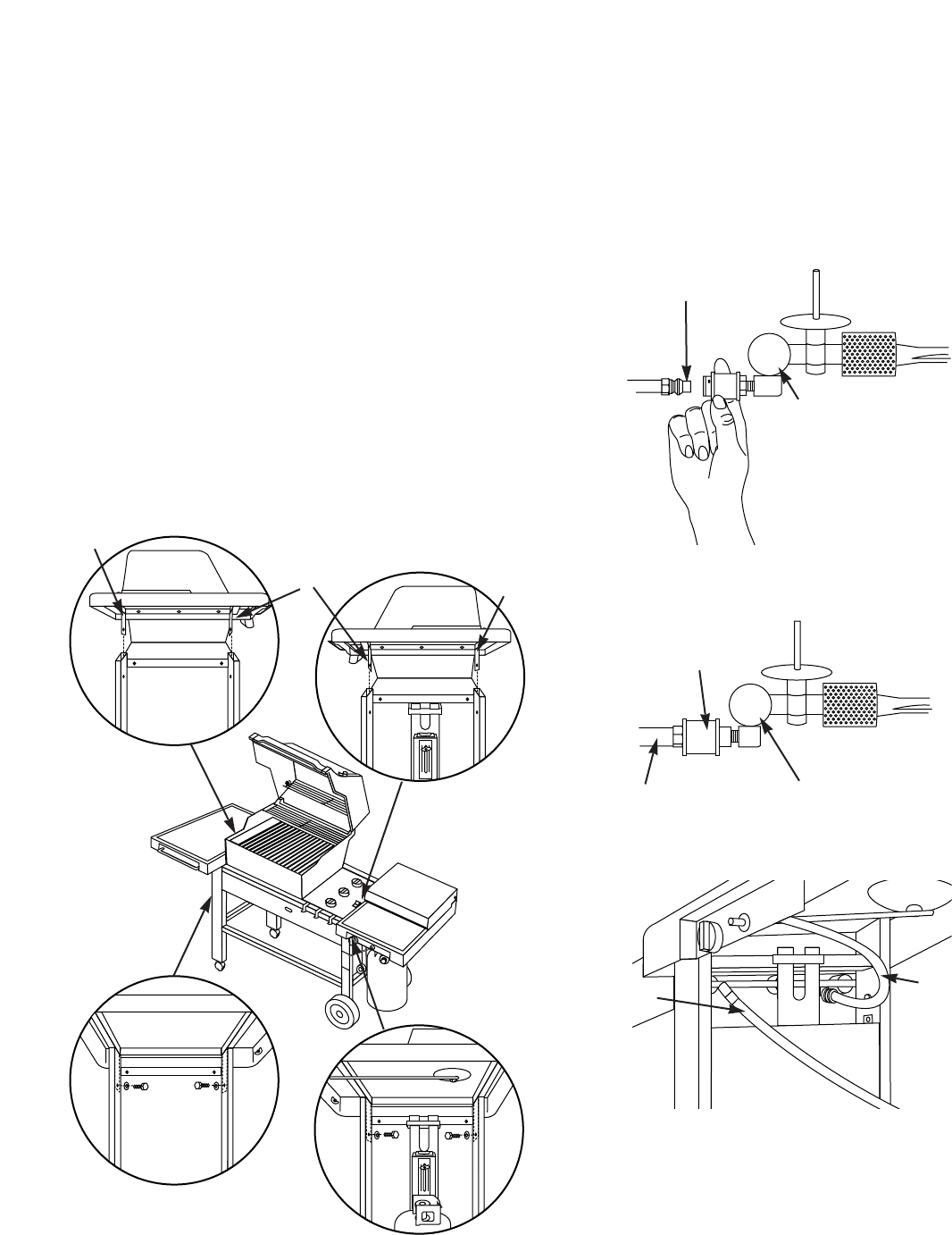 c) Manifold to side burner hose connection.