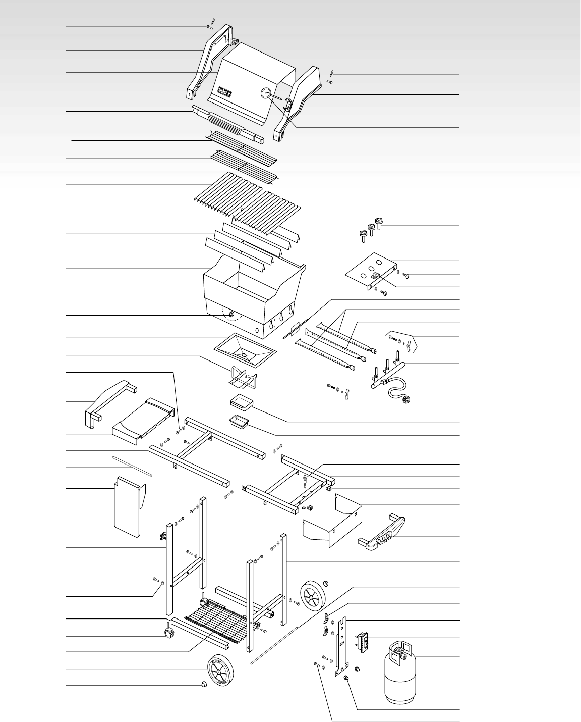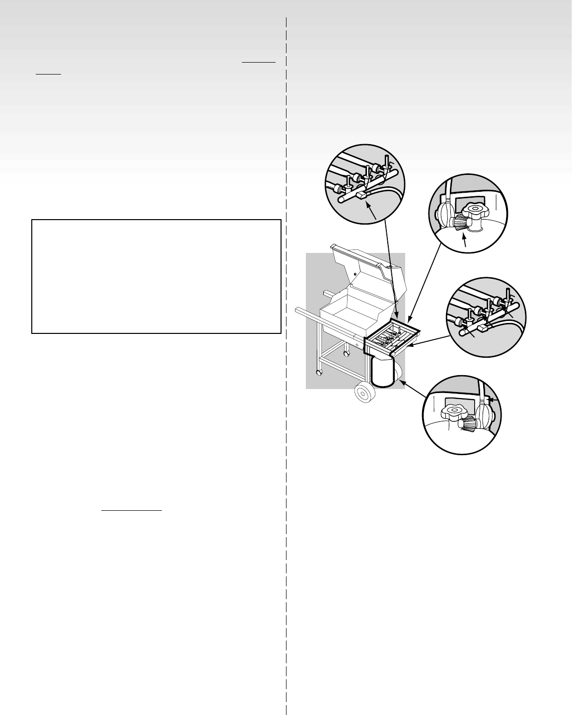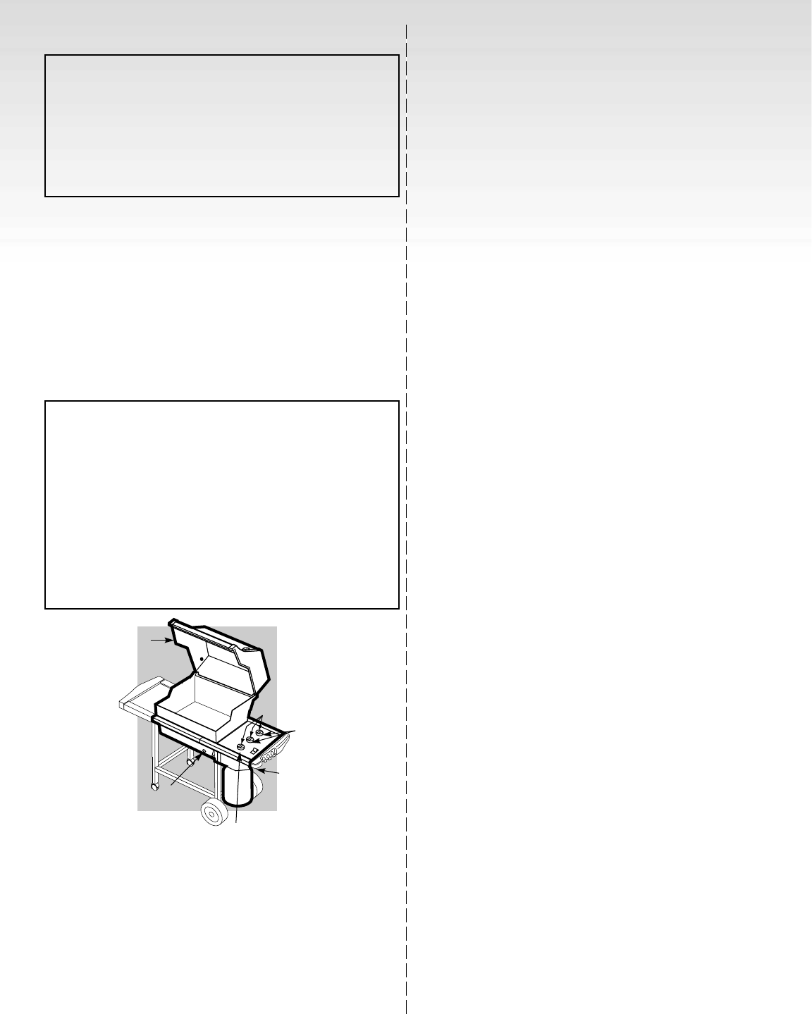 Do not store a spare or disconnected liquid propane cylinder under or near this barbecue.