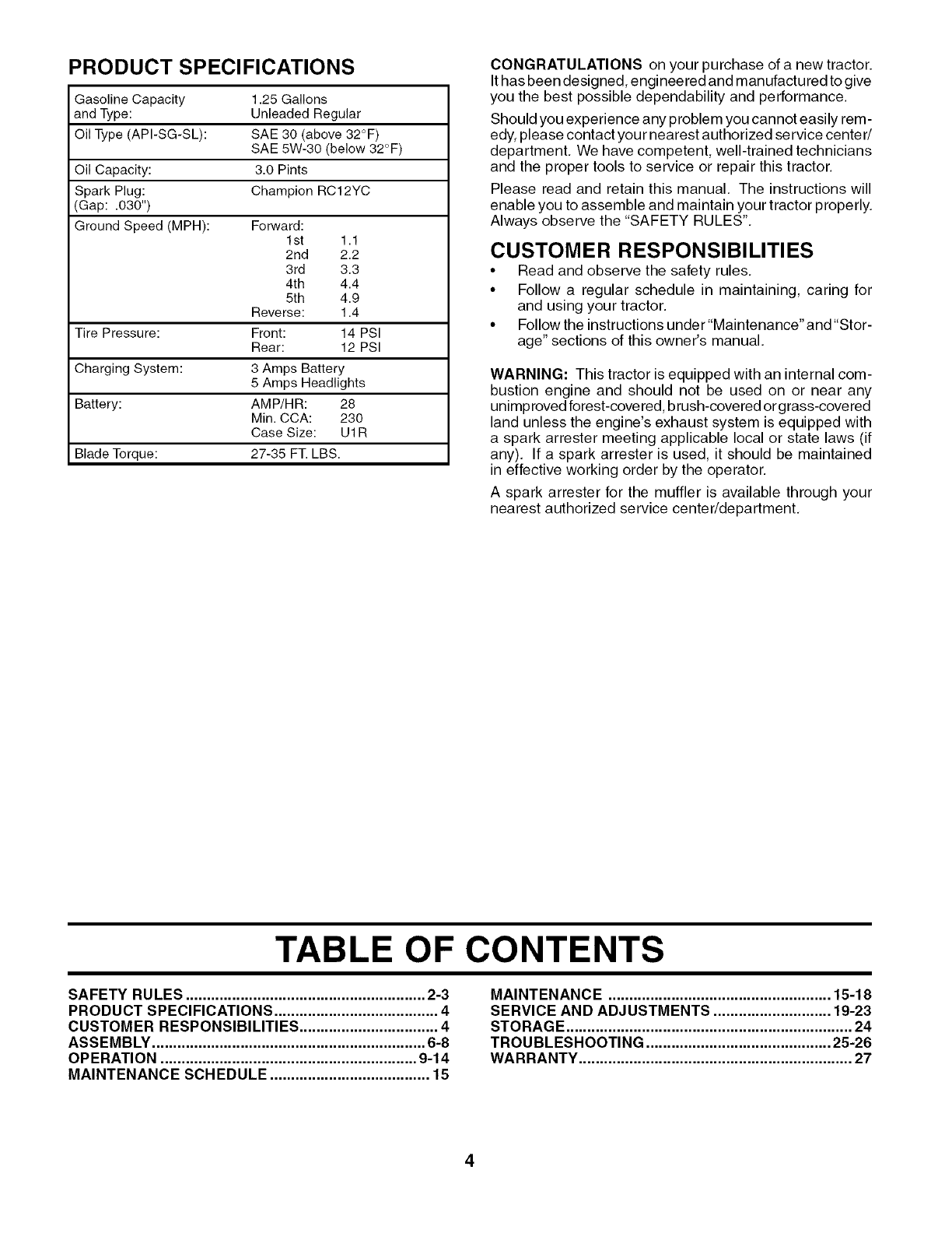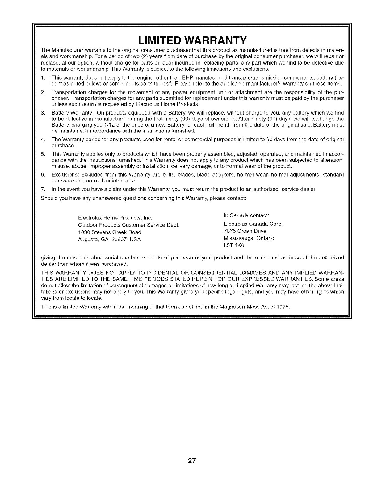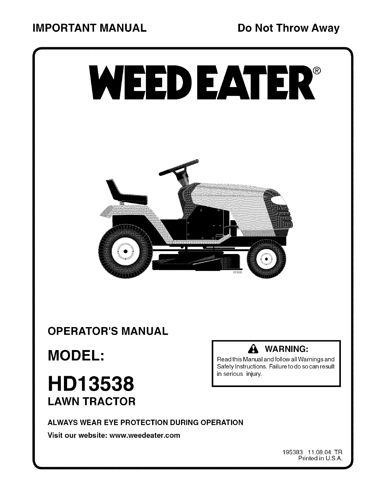 Weed Eater 96016000100 User Manual TRACTOR Manuals And Guides L0605066