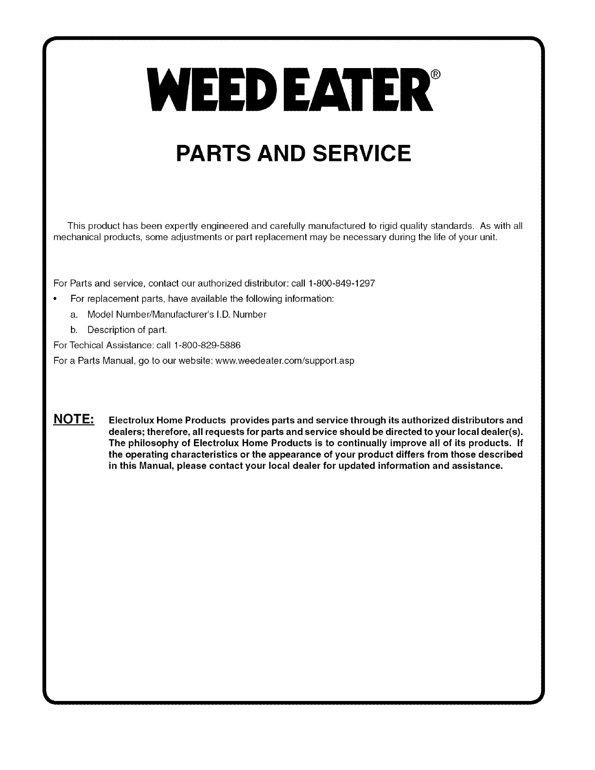 For a Parts Manual, go to our website: www.weedeater.com/support.asp
