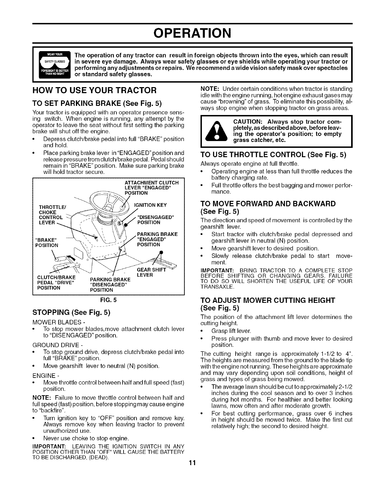 _b ARNING: To avoid serious injury, operate your tractor up and
