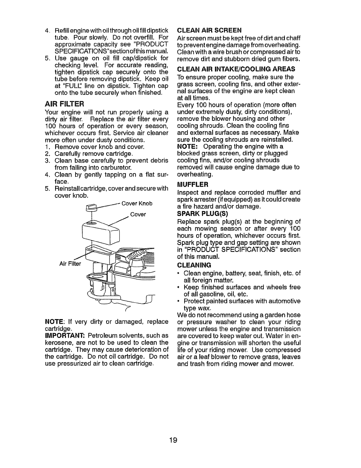 1 This warranty does not apply to the engine, battery (except as noted below) or components paris thereof Please refer to