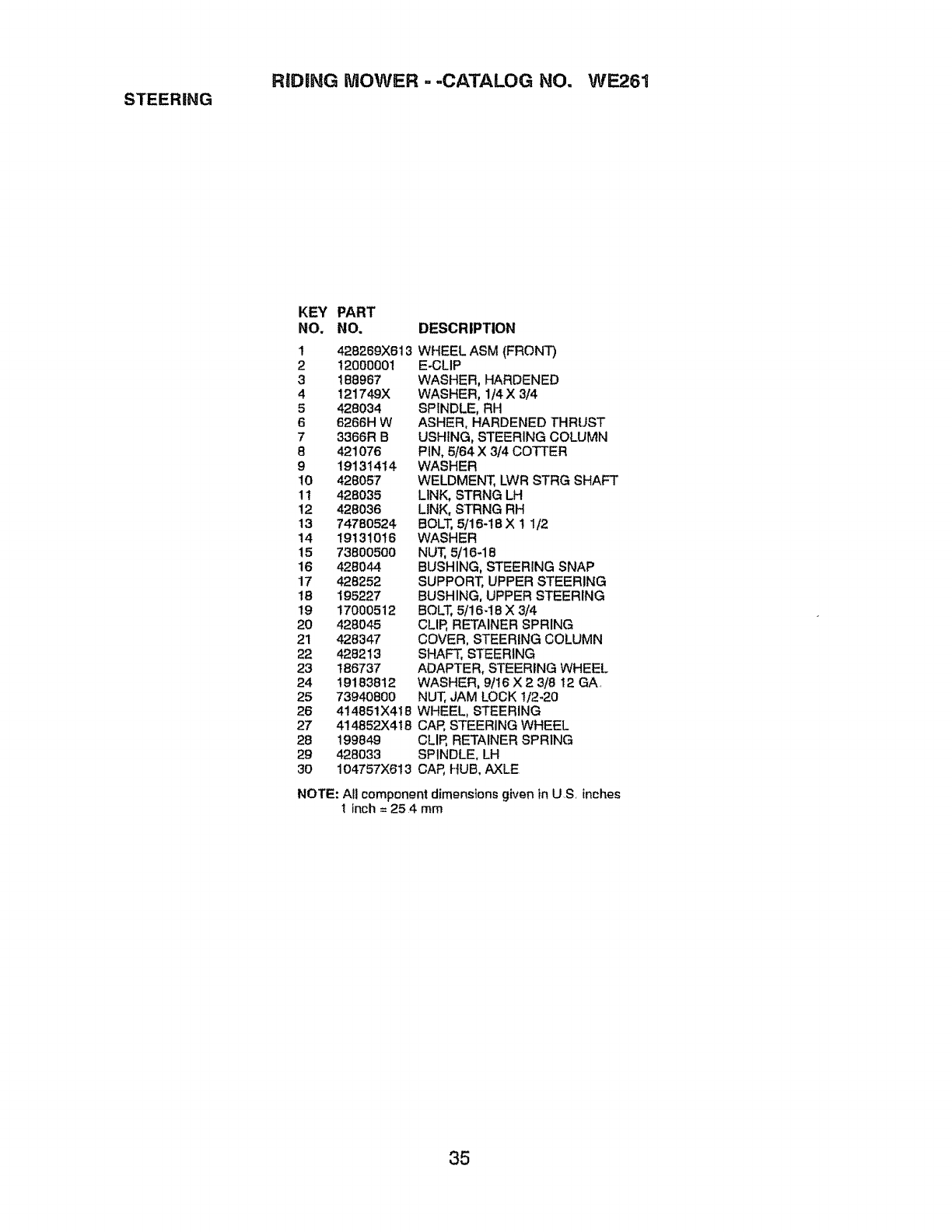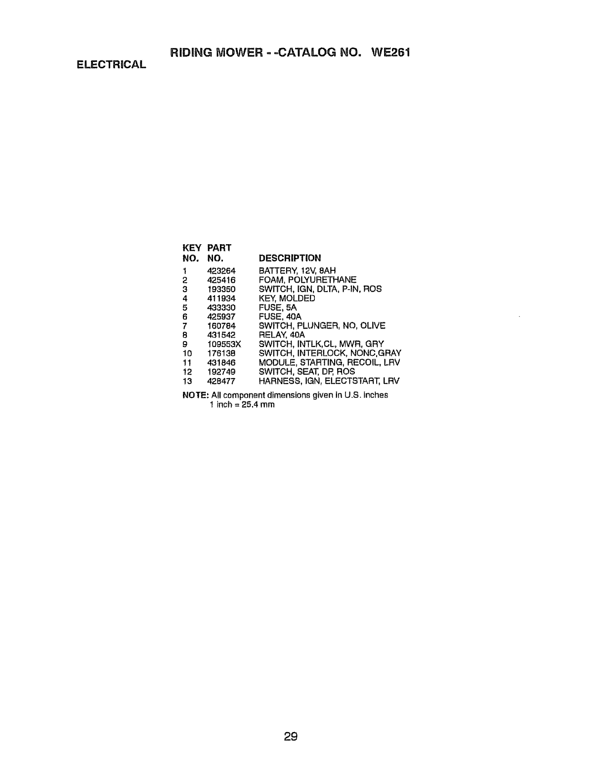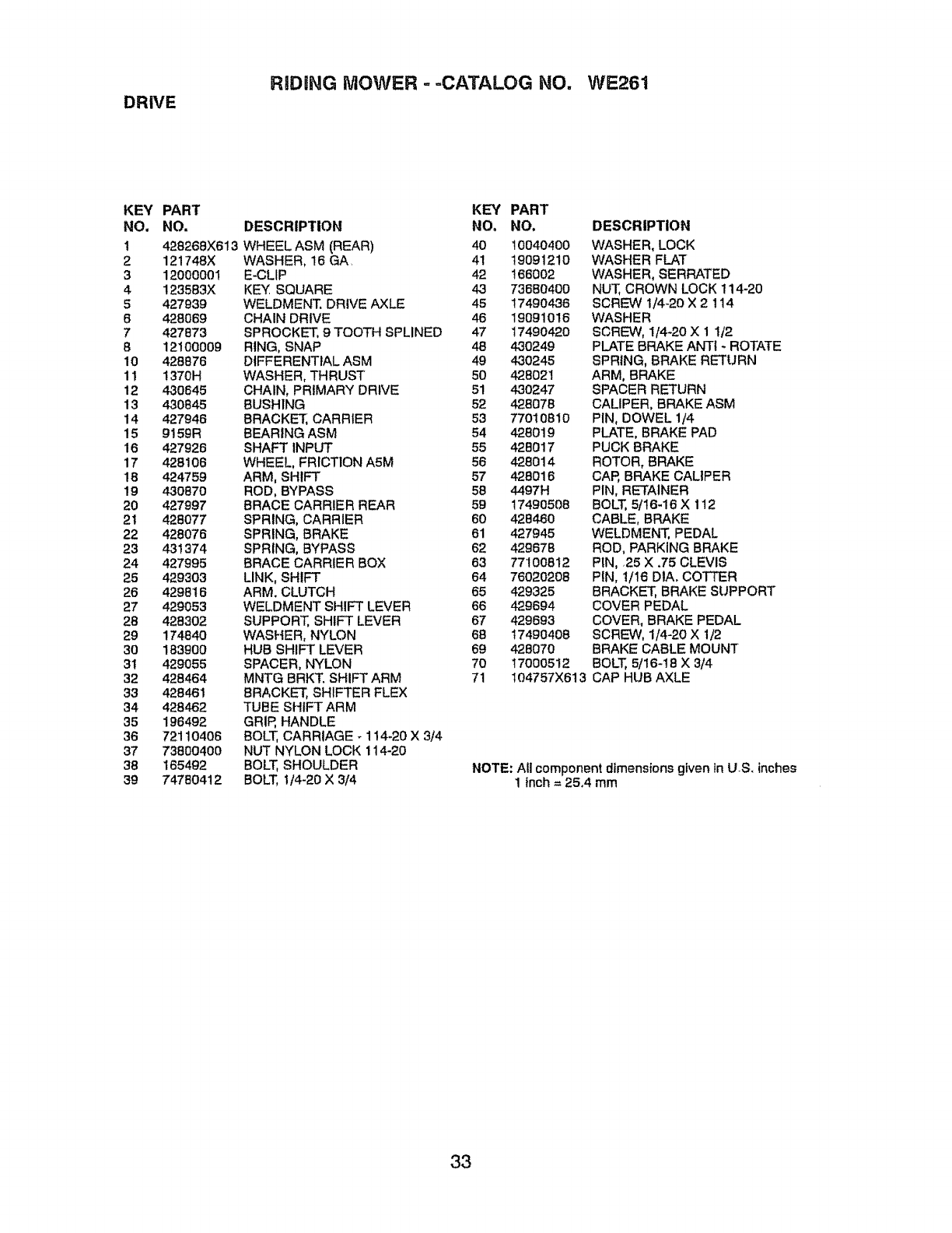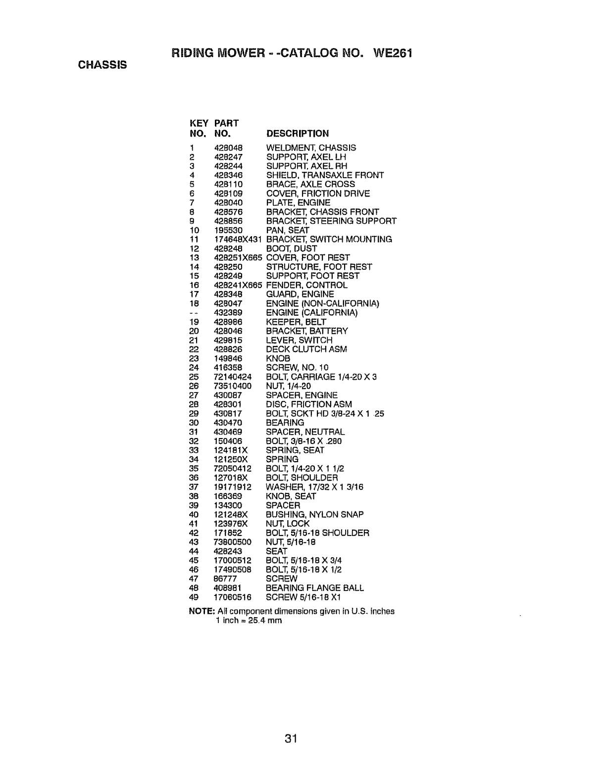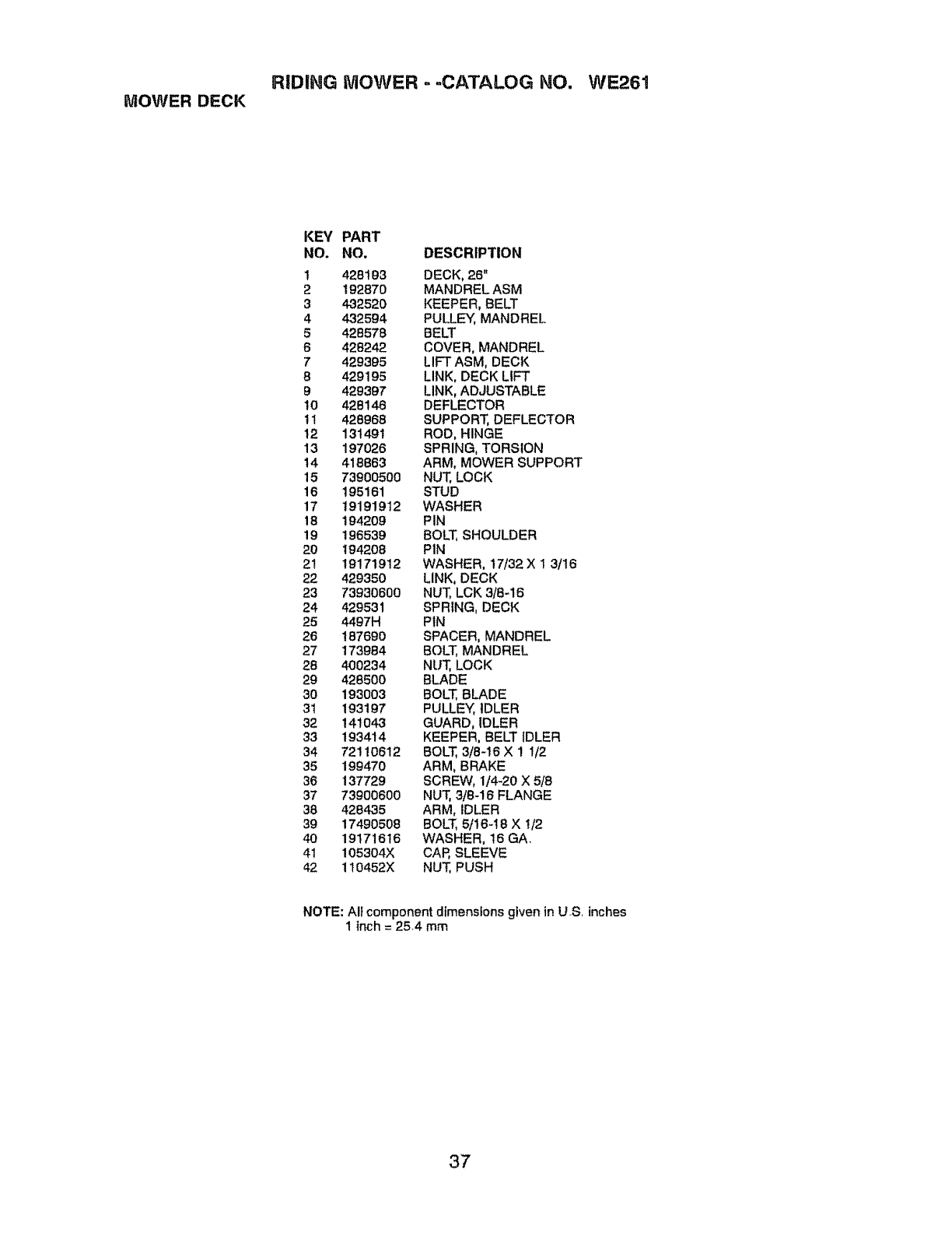 MOWER DECK RiDiNG MOWER., =CATALOG NO. WE261