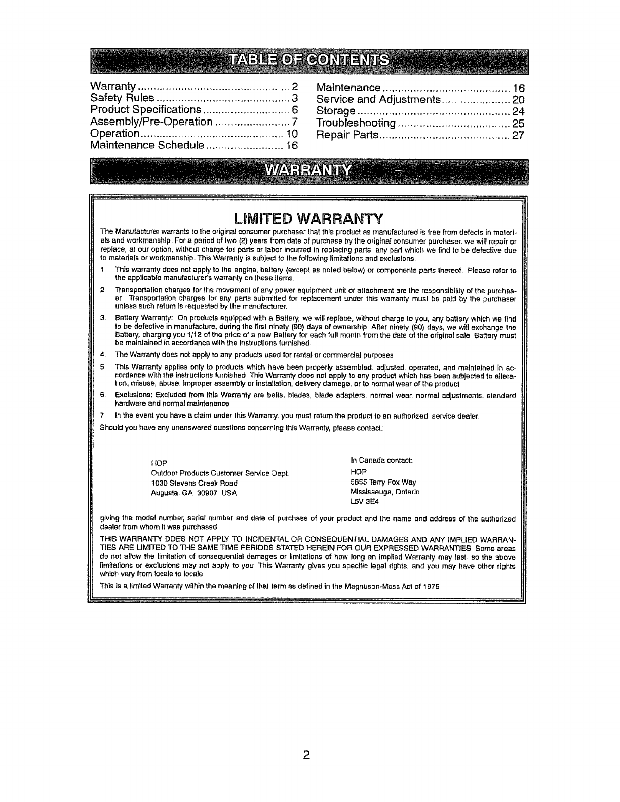 5 This Warranty applies only to products which have been property assembled, adjusted, operated, and maintained in ac-