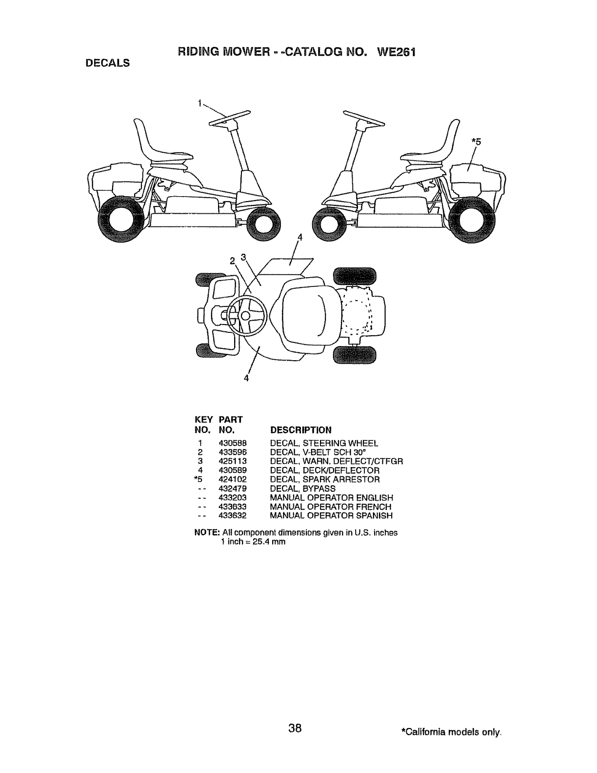 DECALS RiDRNG MOWER = =CATALOG NO. WE261
