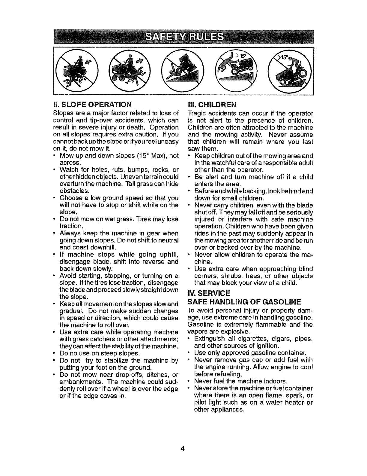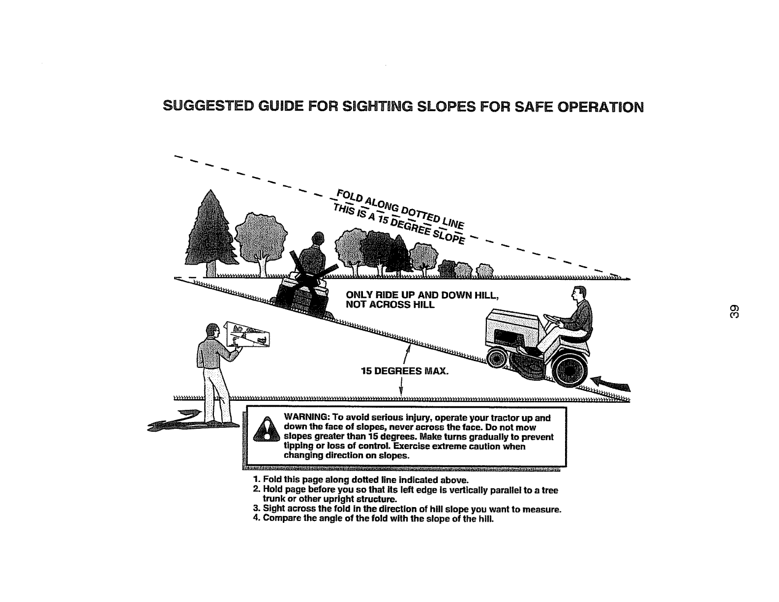 slopes greater than 15 degrees. Make turns gradually to prevent