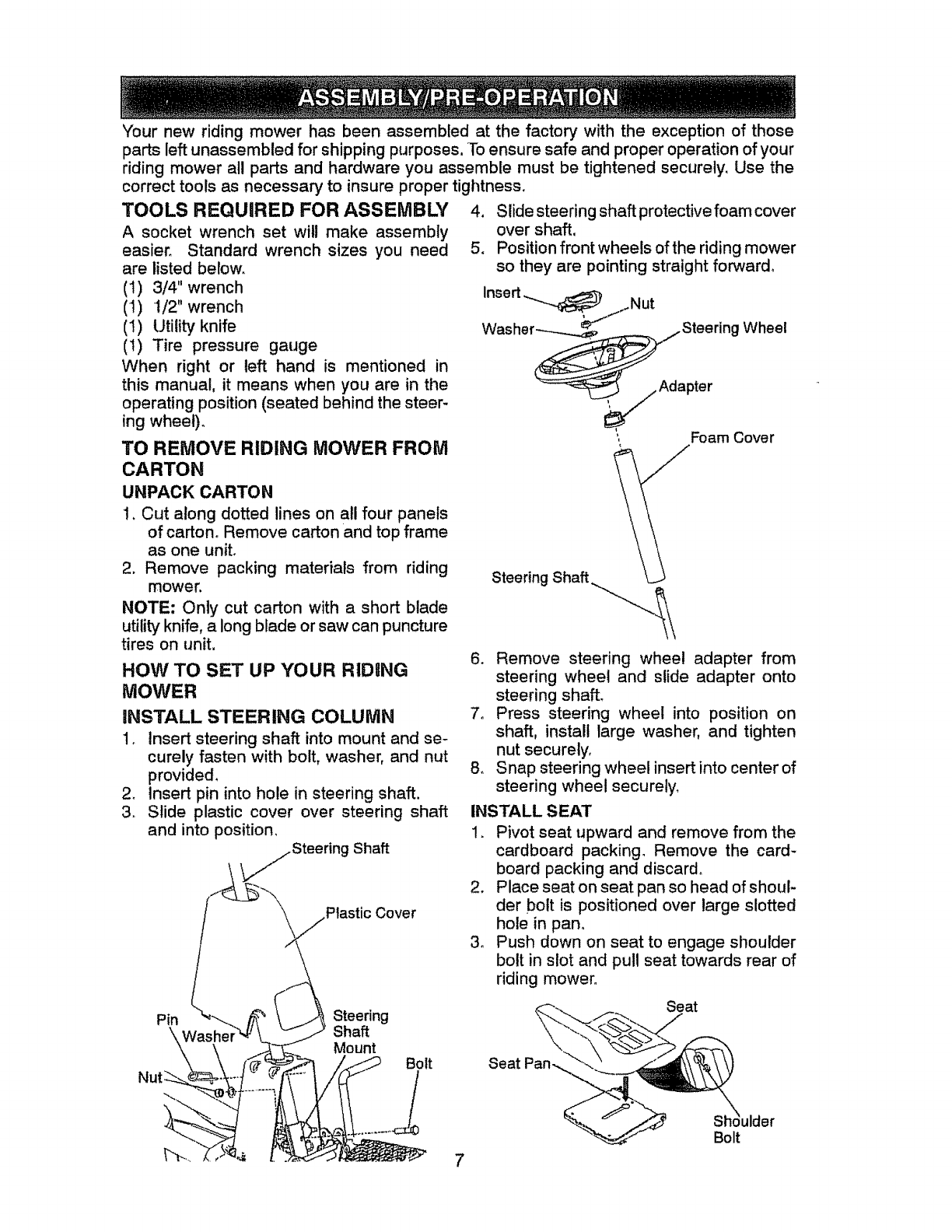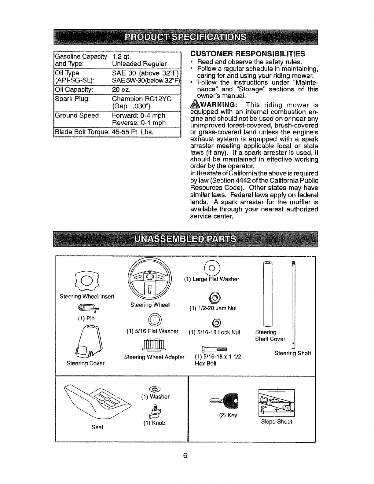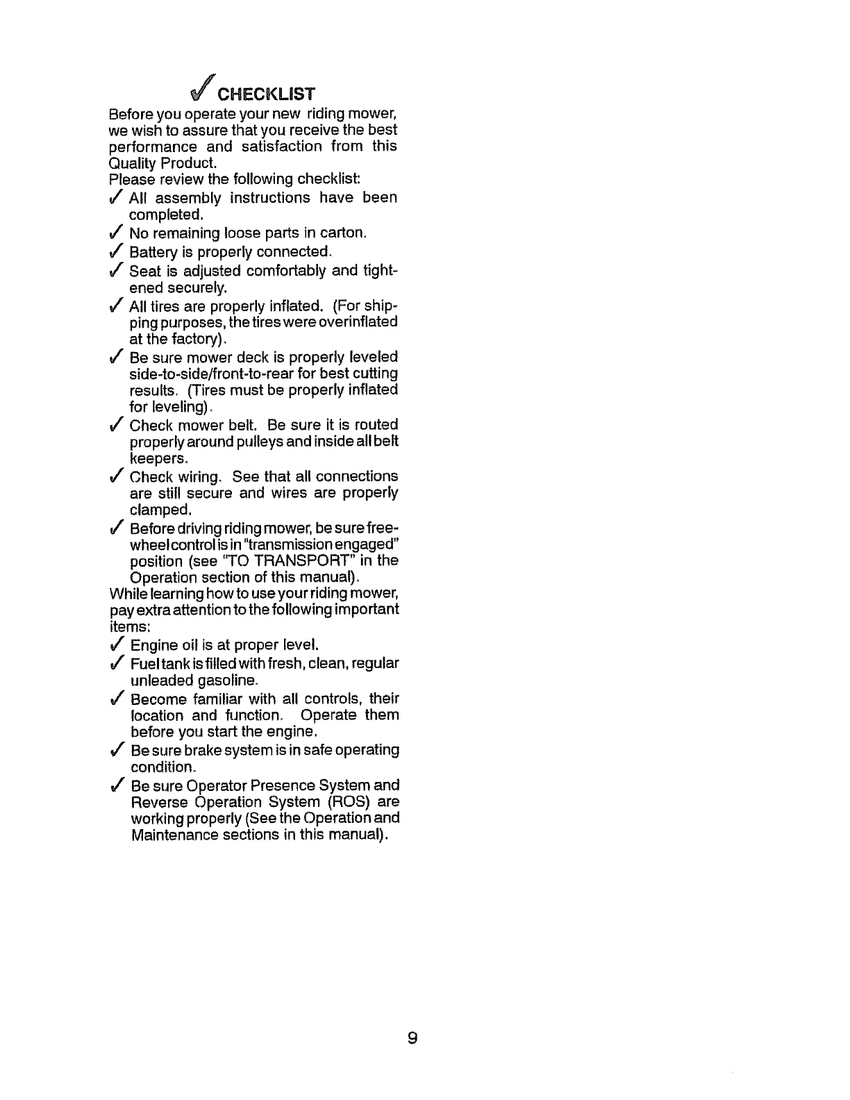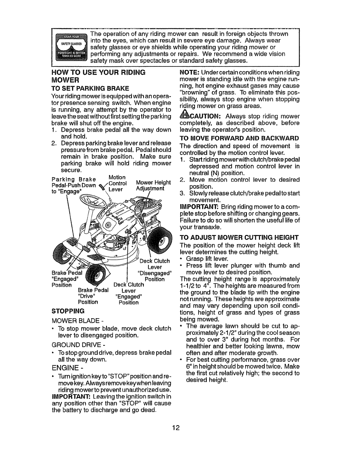 Weed Eater 960240001 User Manual RIDING MOWER Manuals And Guides 1009827L