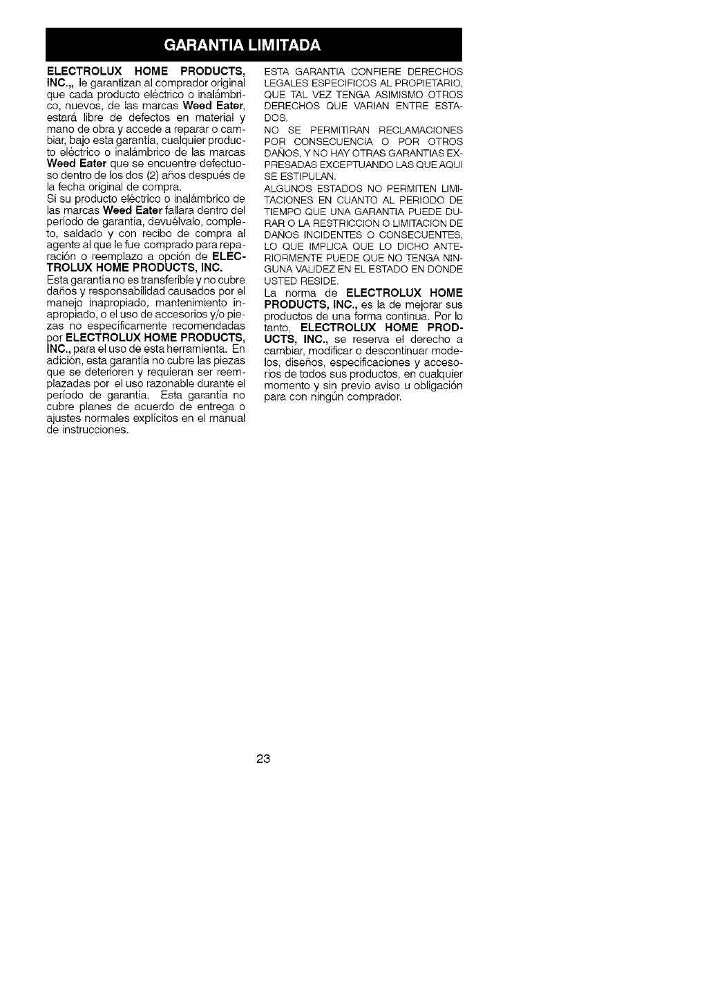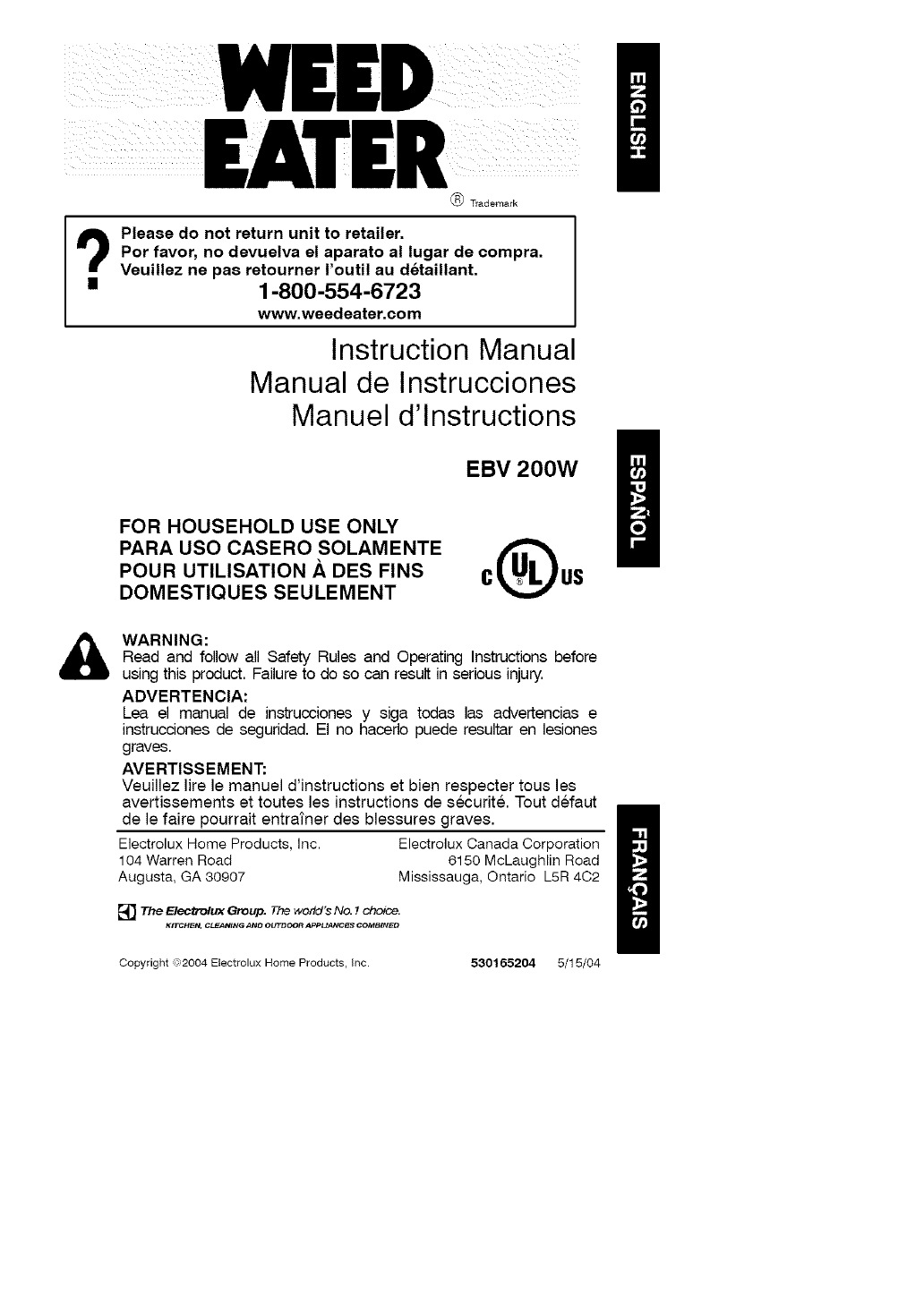 Copyright =2004 Electrolux Home Products, inc. 530165204 5/15/04