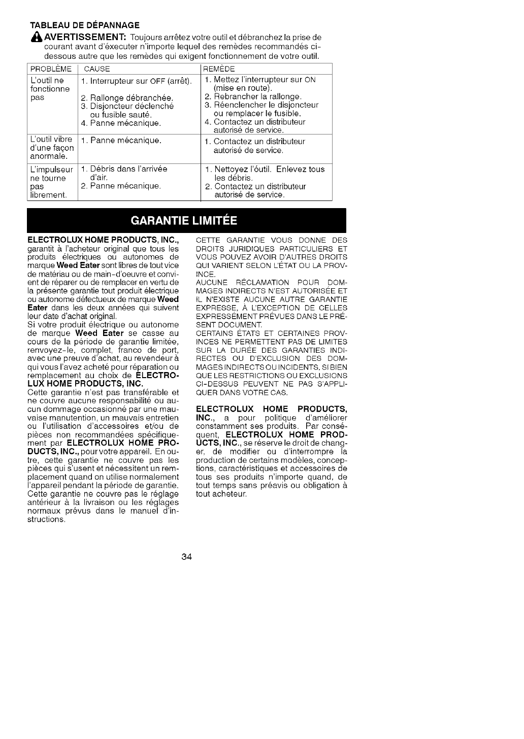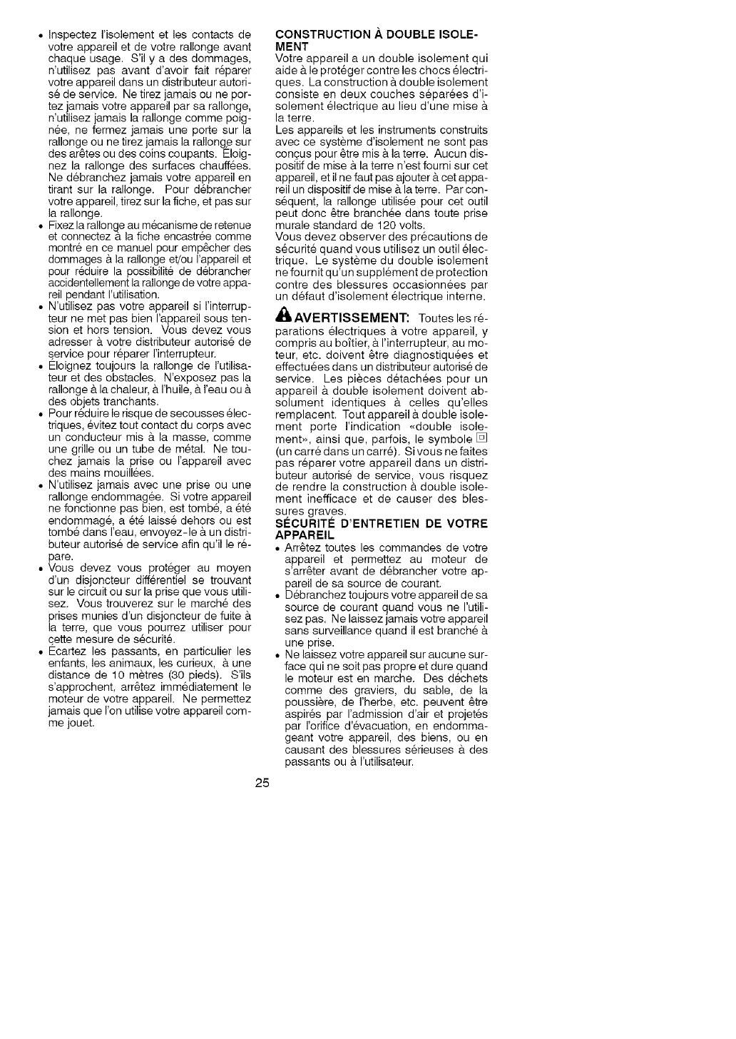 Veuillez ne pa8 retourner routil au detaillant.