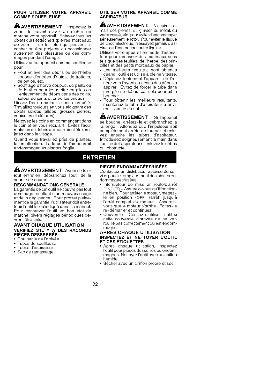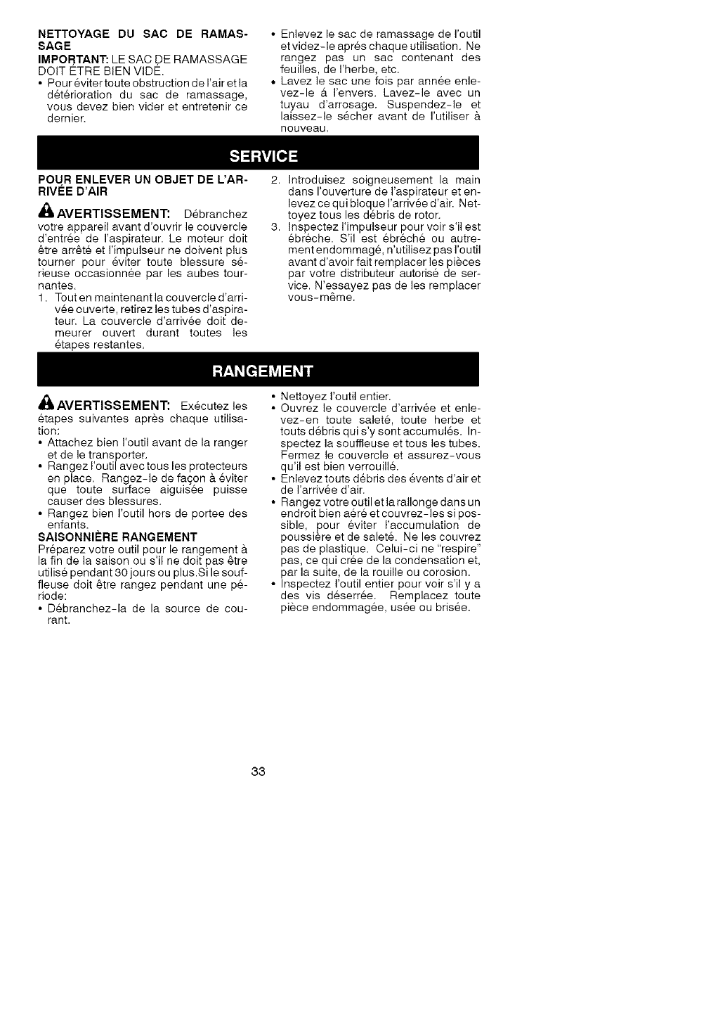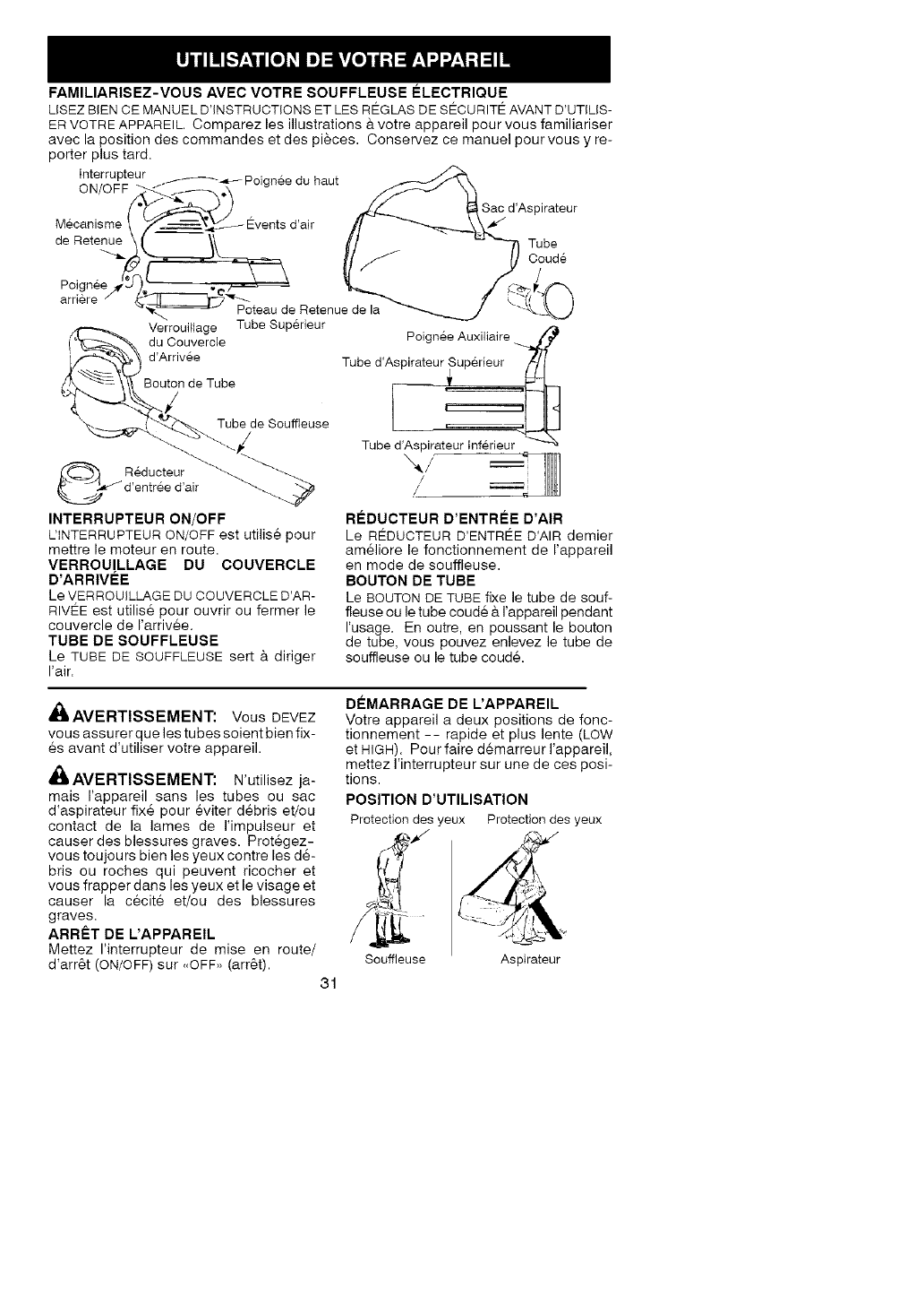 _, AVERTISSEMENT: Toujours arr_tez votre outil et d6branchez la prise de