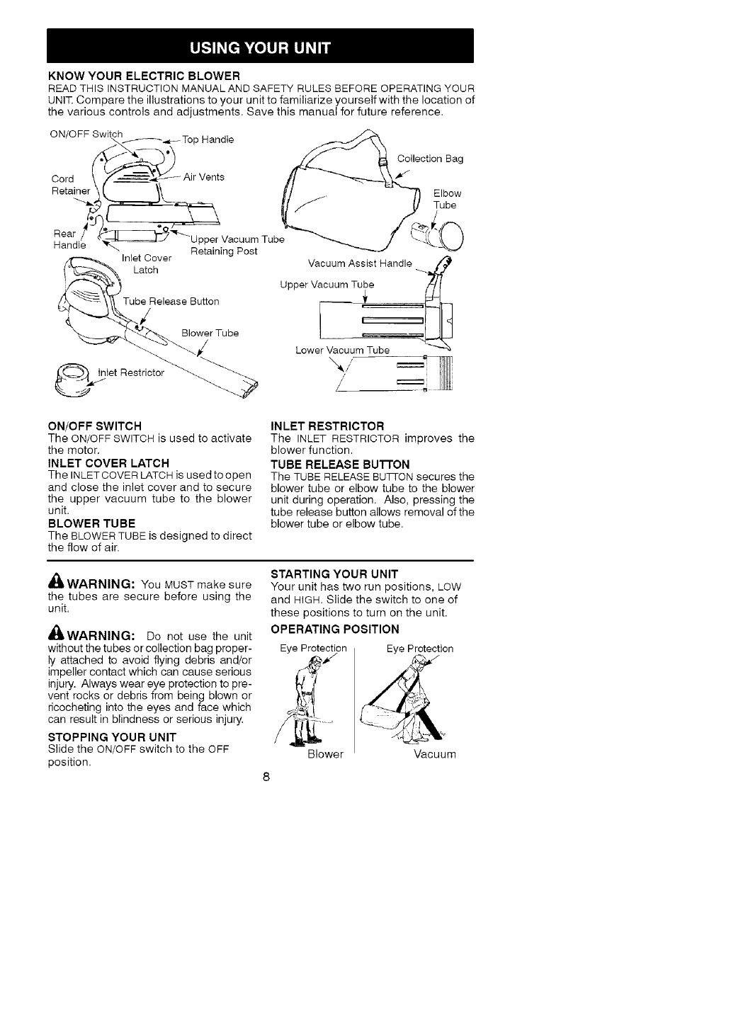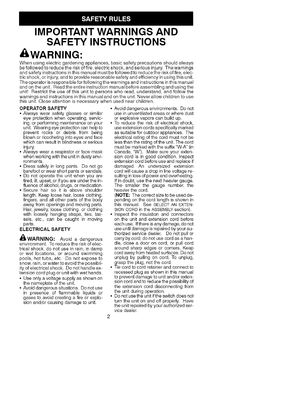tric shock, or injury, and to provide reasonable safety and efficiency in using this unit.