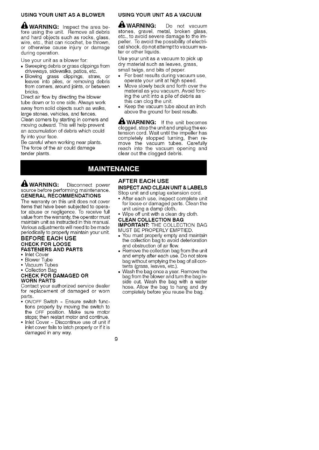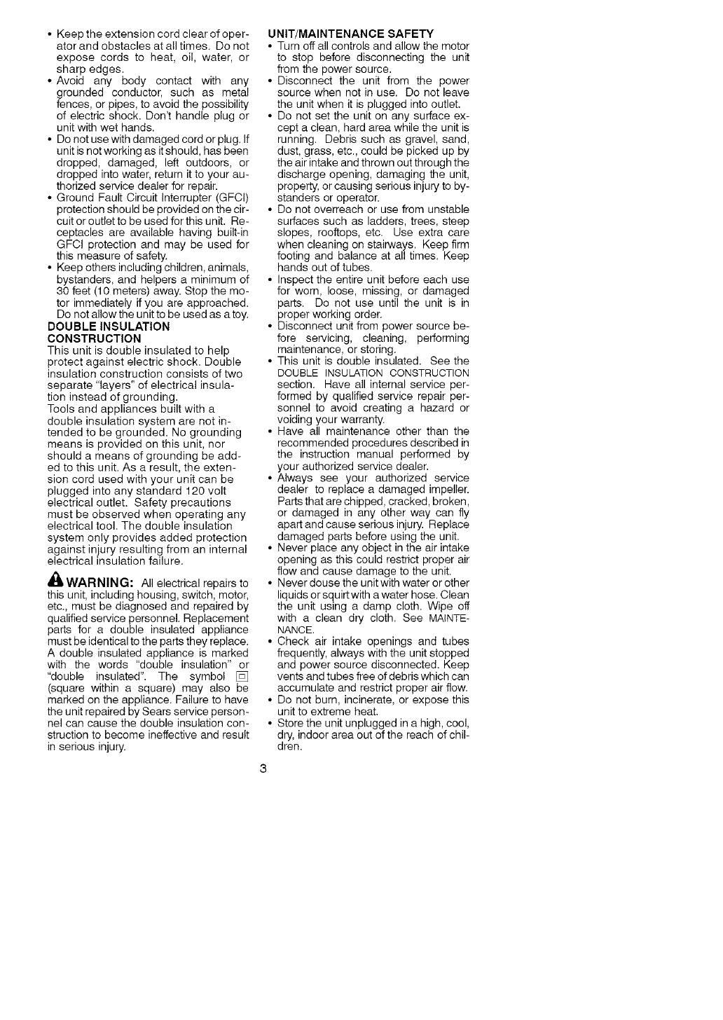 warnings and instructions in this manual and on the unit. Never allow children to use