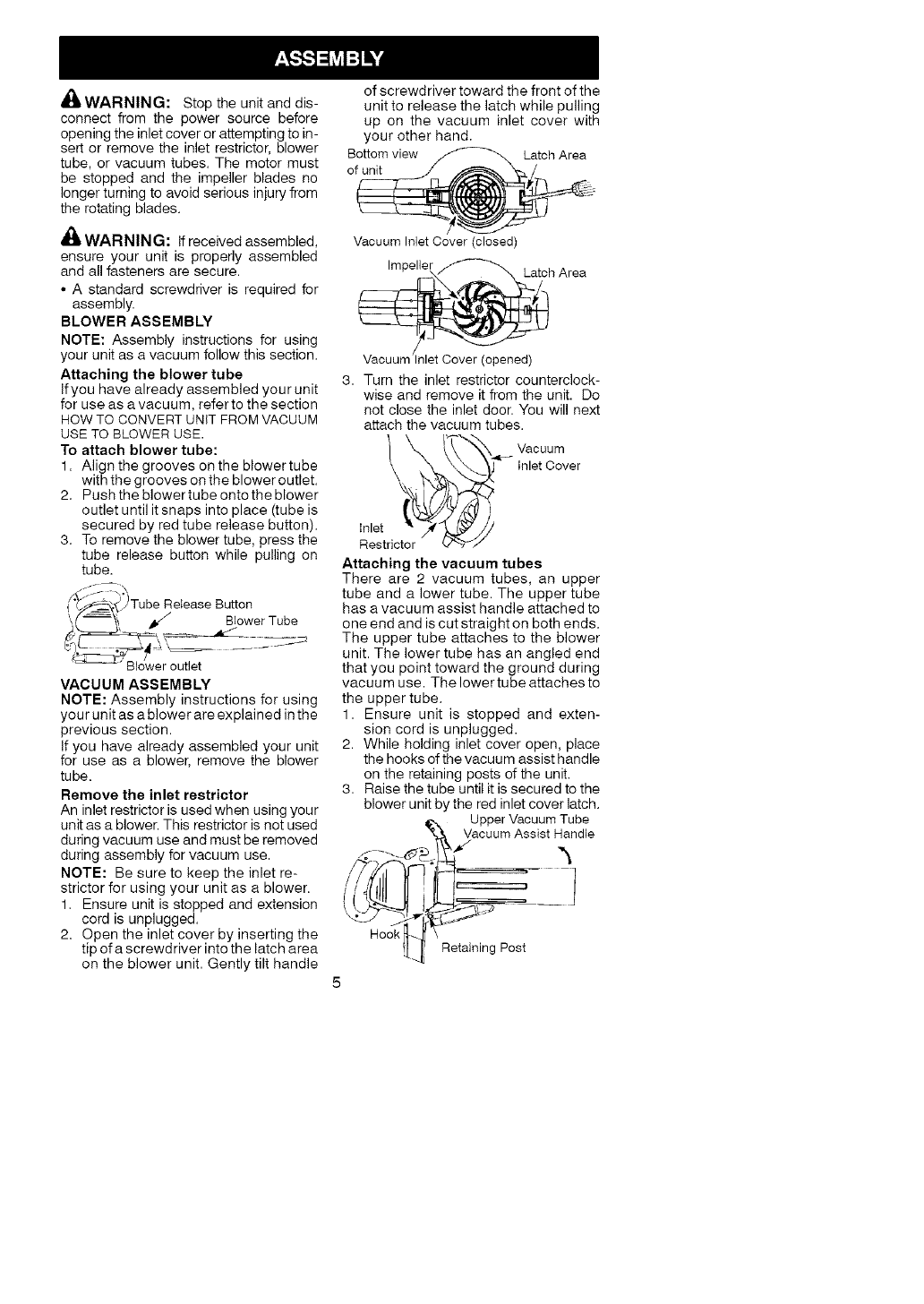 and on the unit. Read the entire instruction manual before assembling and using the