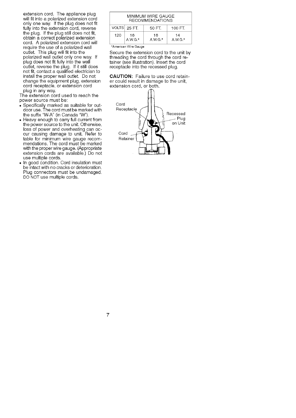 less than the rating of the unit. The cord