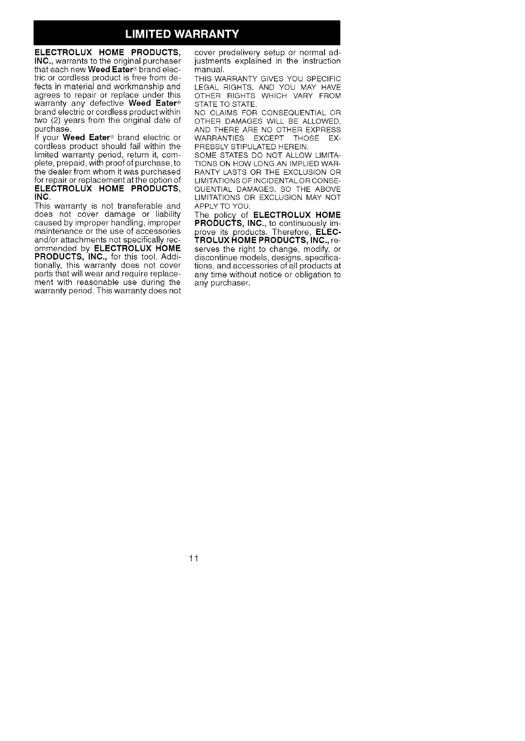 ELECTROLUX HOME PRODUCTS, INC.,